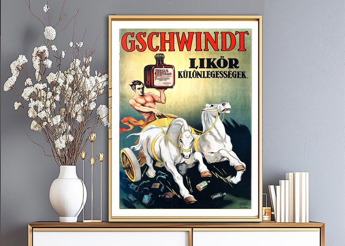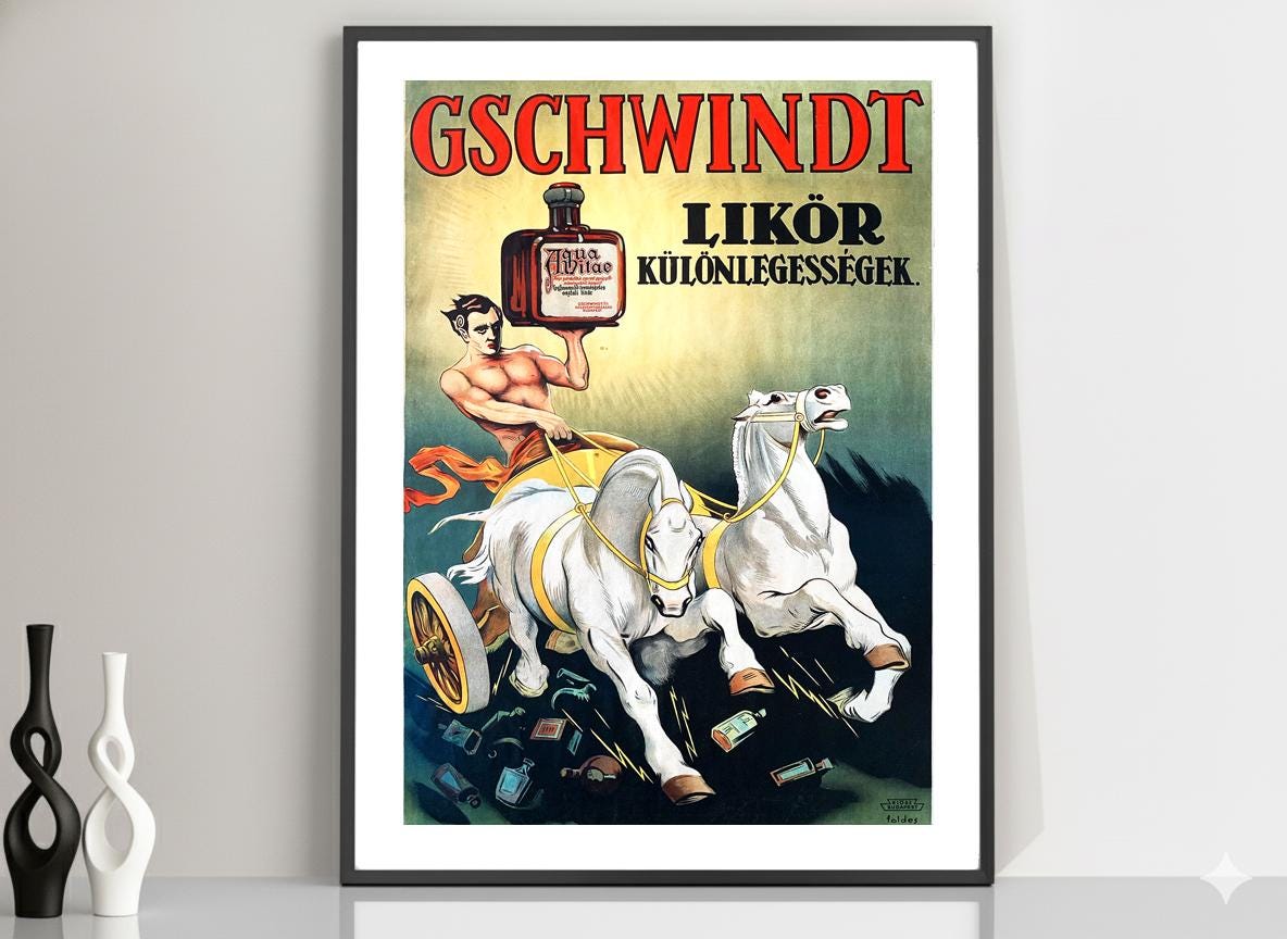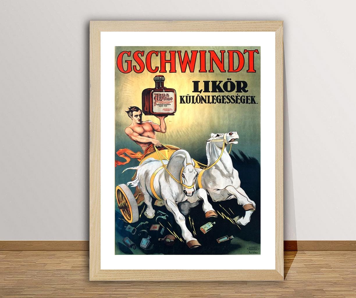 Vintage Gschwindt Likör Különlegessegek Advertisement Art Print - Reproduction of a Vintage Artwork, Decorative Purposes Wall Decor - Reproduction of a Vintage Artwork, Decorative Purposes Wall Decor - Poster Paper or Canvas Print / Gift Idea