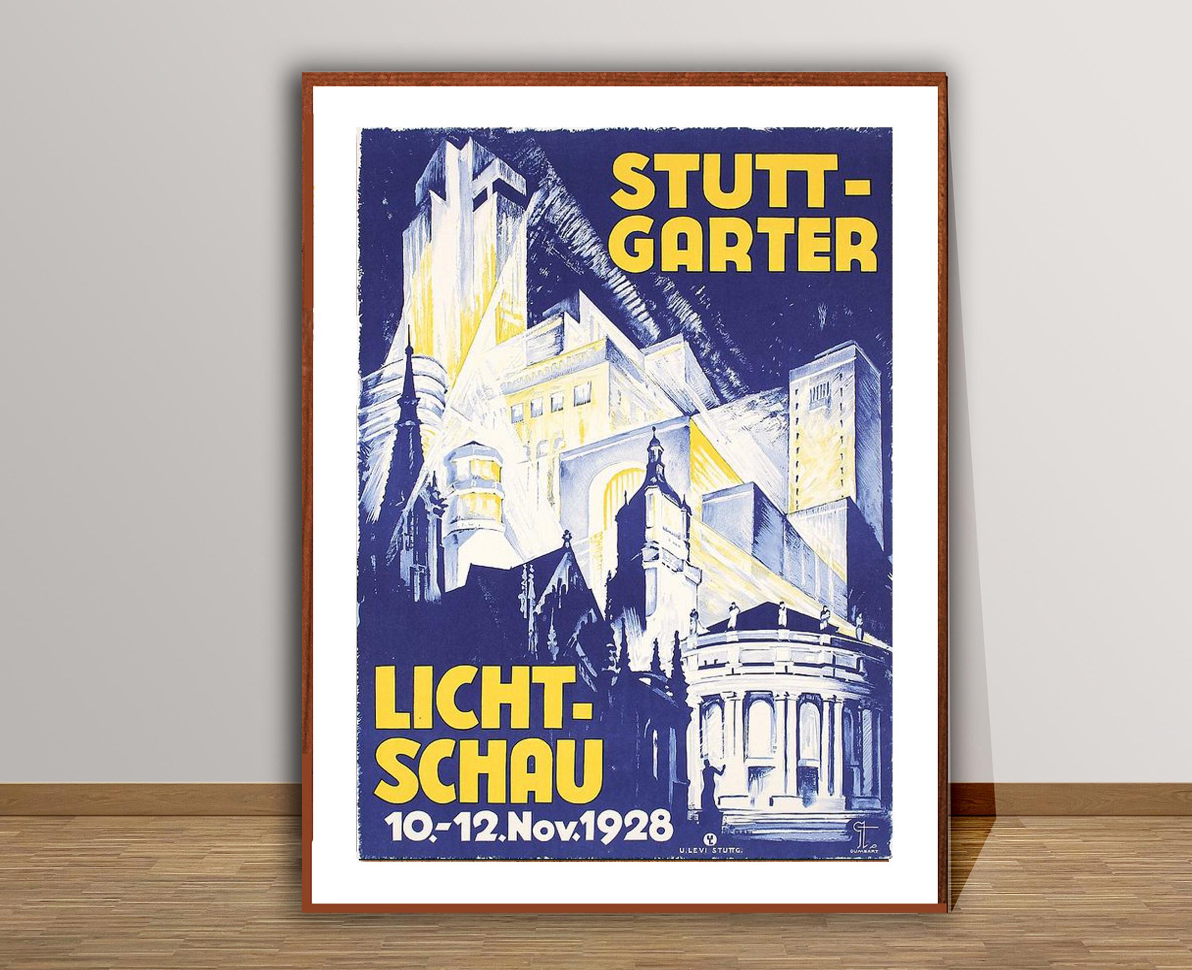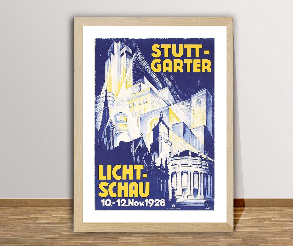 Vintage Stuttgart Germany Travel Poster: Licht Schau Art Print