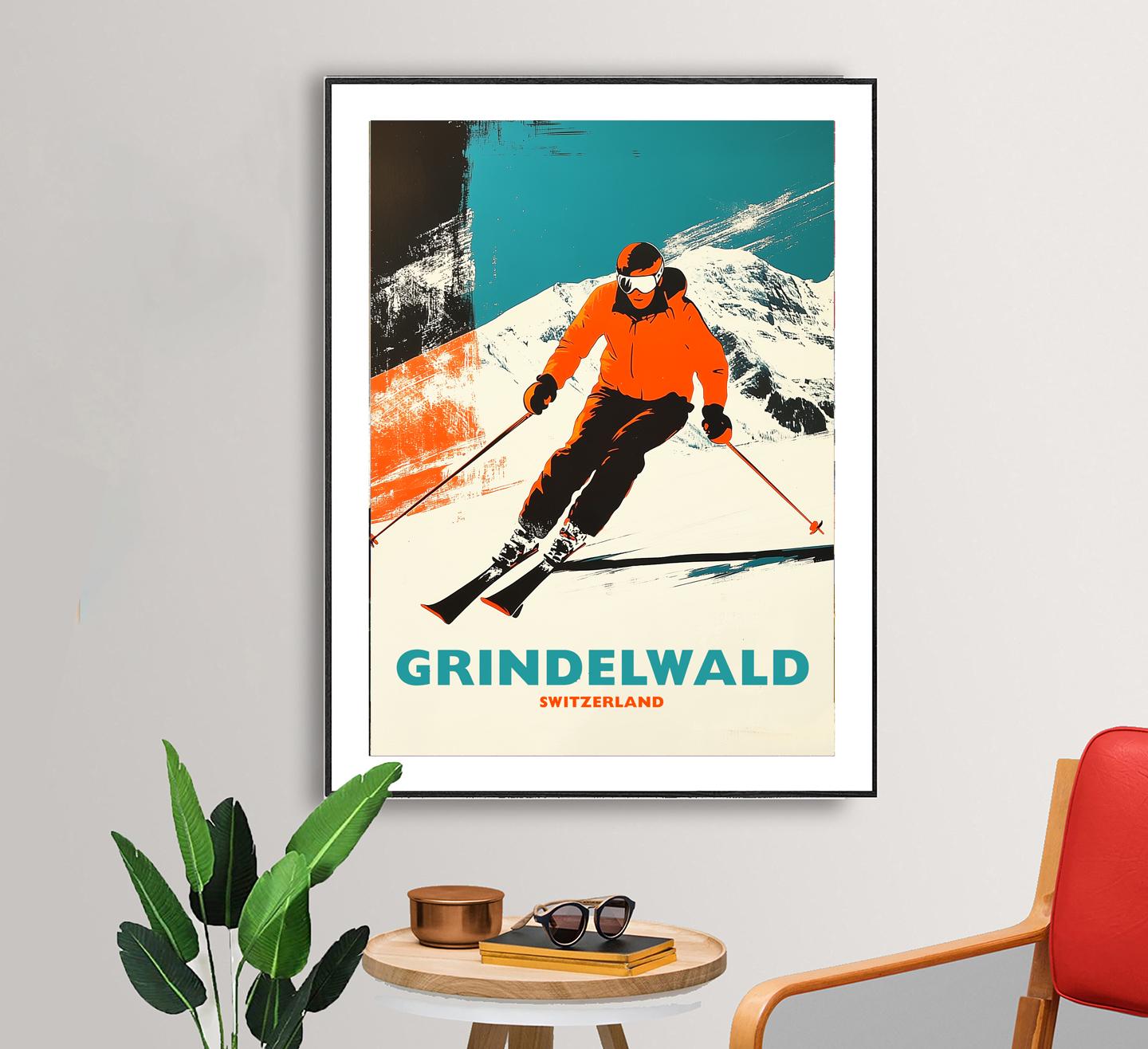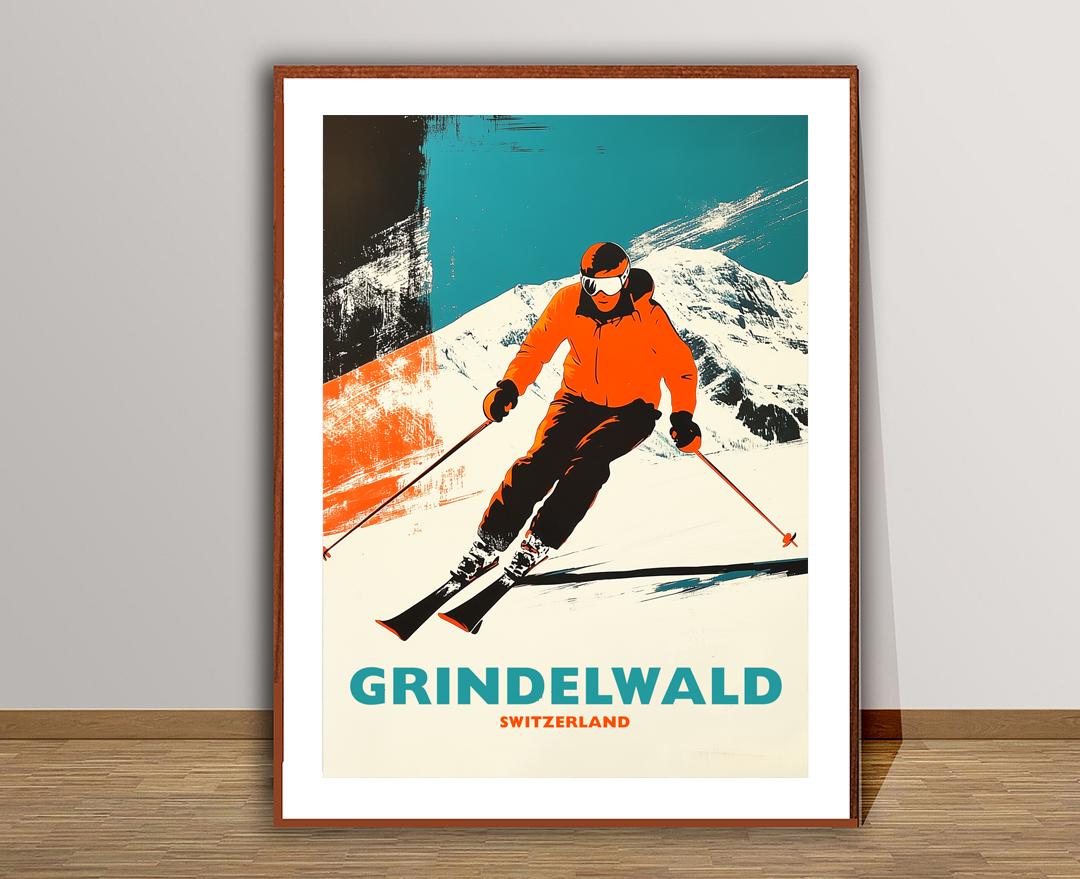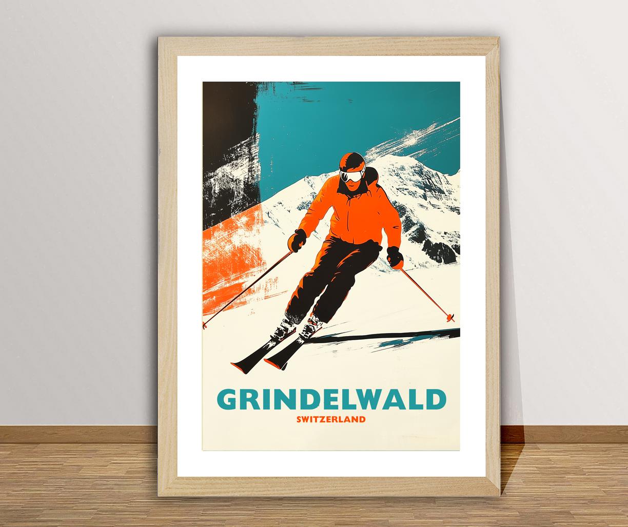 Grindelwald Switzerland Vintage Ski Travel Poster Art Print