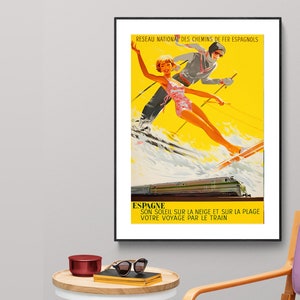 Printed on high quality paper, cotton canvas or adhesive sticker paper. A high quality reproduction of vintage ski poster. Professional packaging for safe shipping. All images (dimensions) include a white border. (The white border can be removed. Please write a note when ordering.)