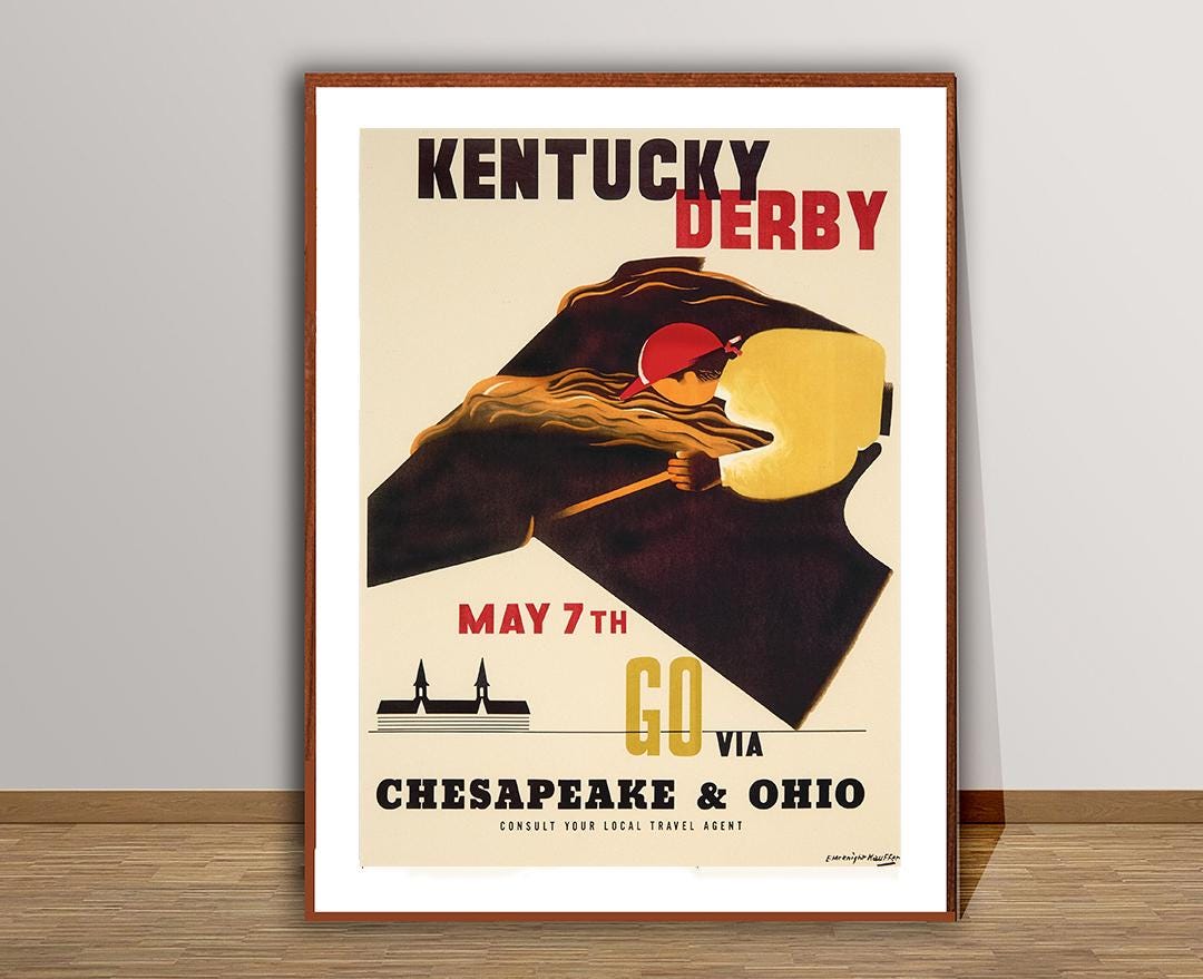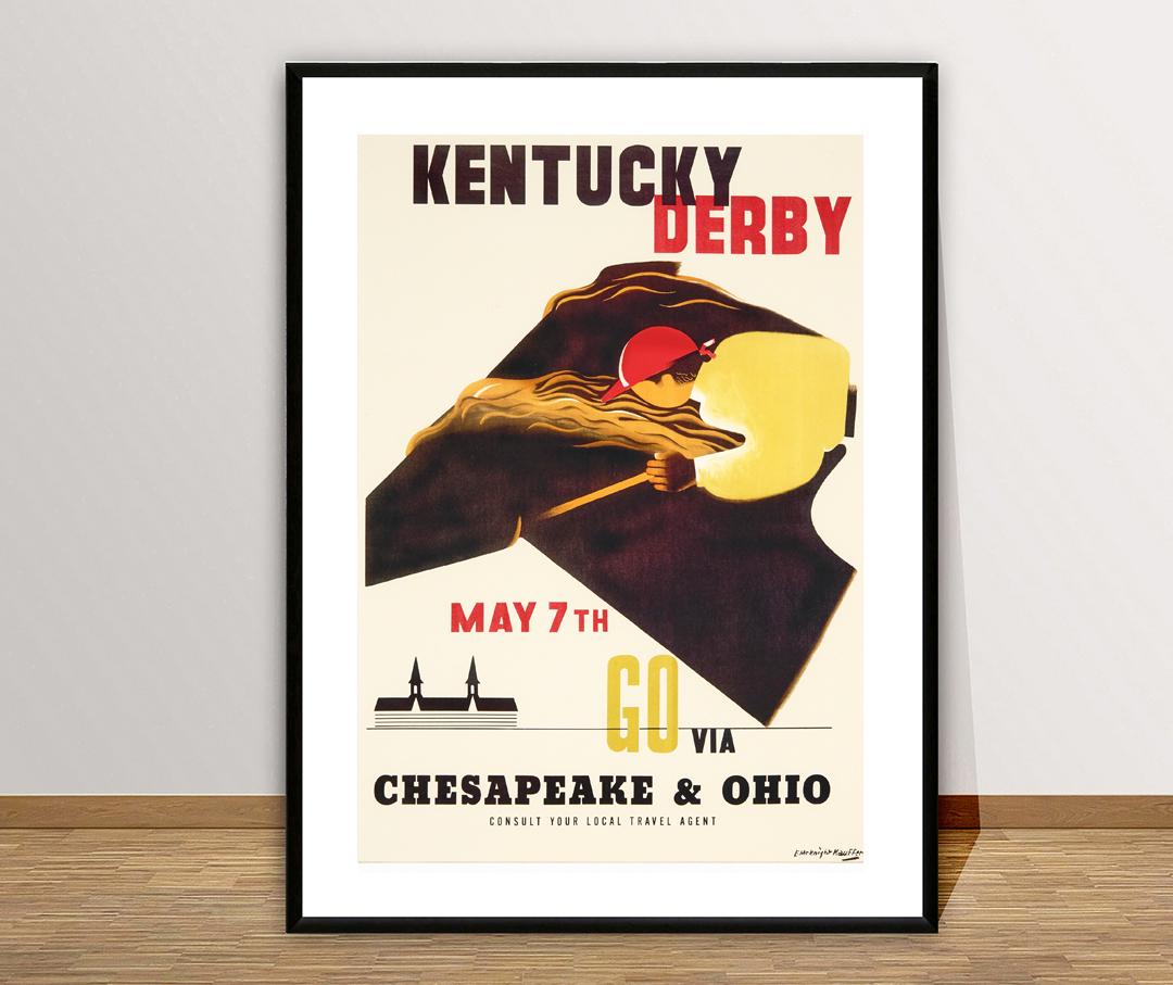 Vintage Kentucky Derby Travel Poster: Chesapeake Ohio Horse Racing Art