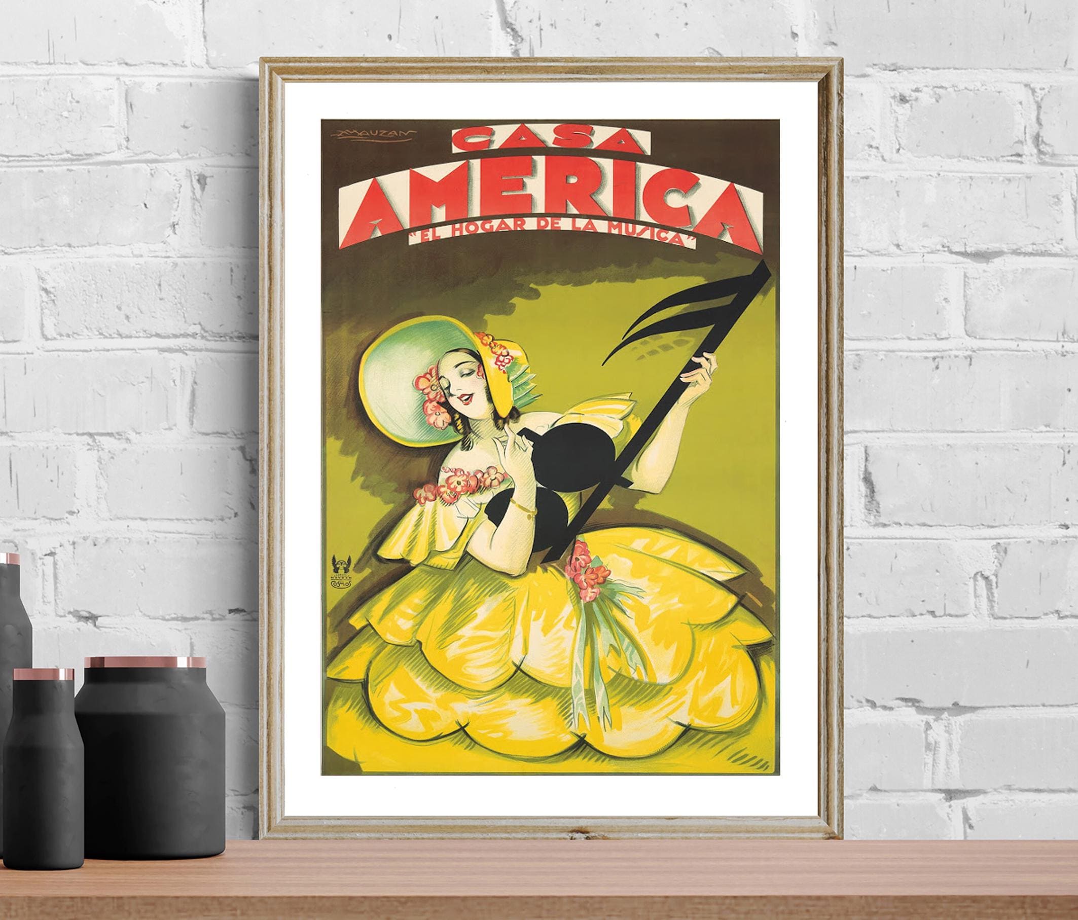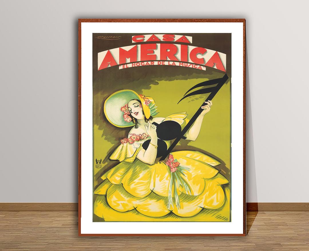 Casa America Vintage Music Poster: Art Deco Wall Decor