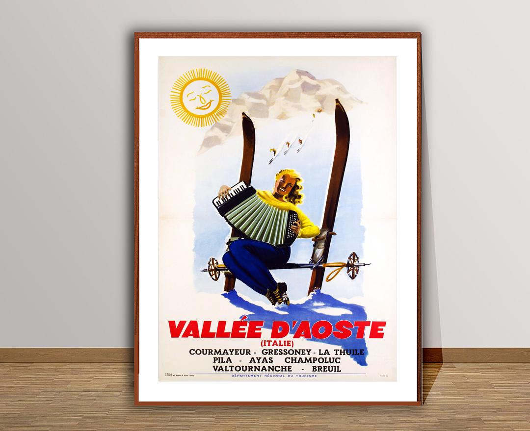 Vallee d'Aoste, Italie Vintage Travel Poster - Poster Paper or Canvas Print / Gift Idea