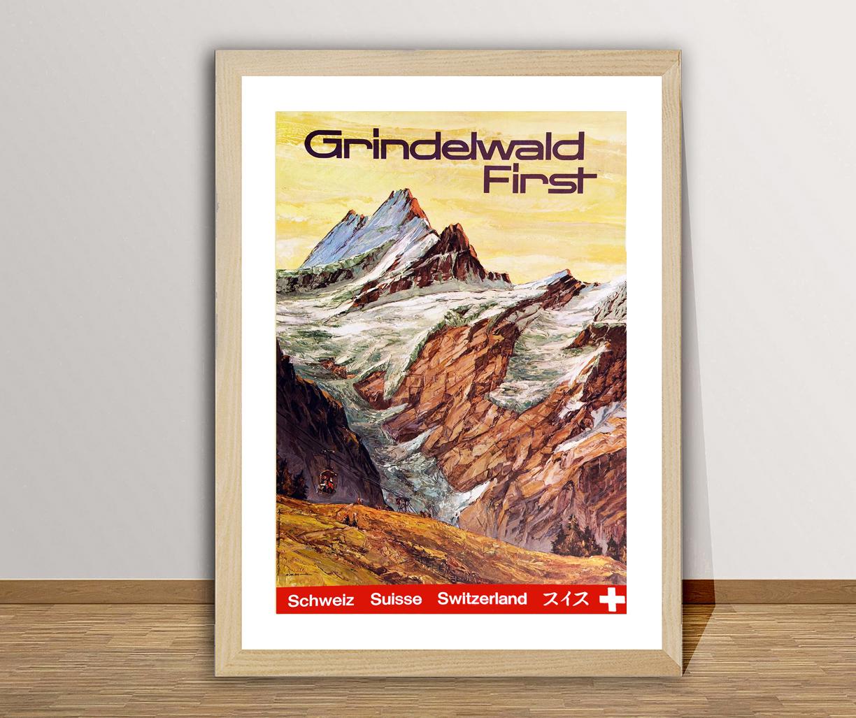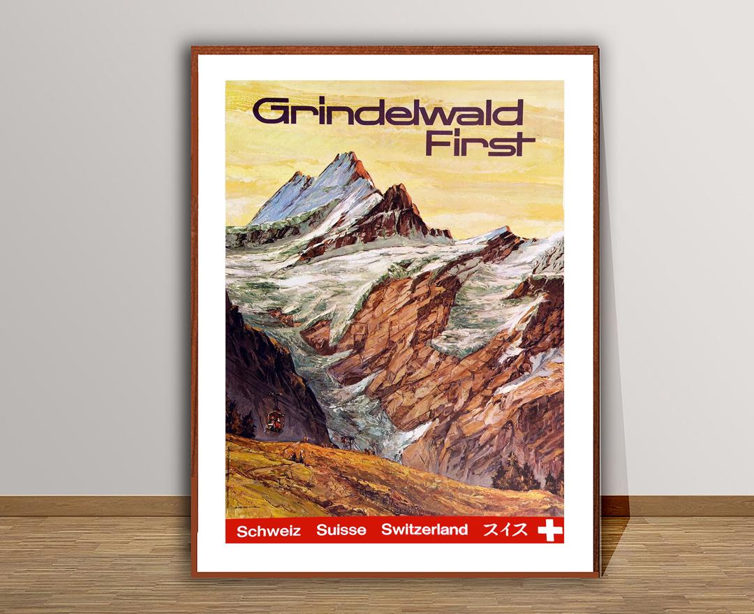 Grindelwald First, Switzerland Vintage Ski Poster - Poster Paper or Canvas Print / Gift Idea
