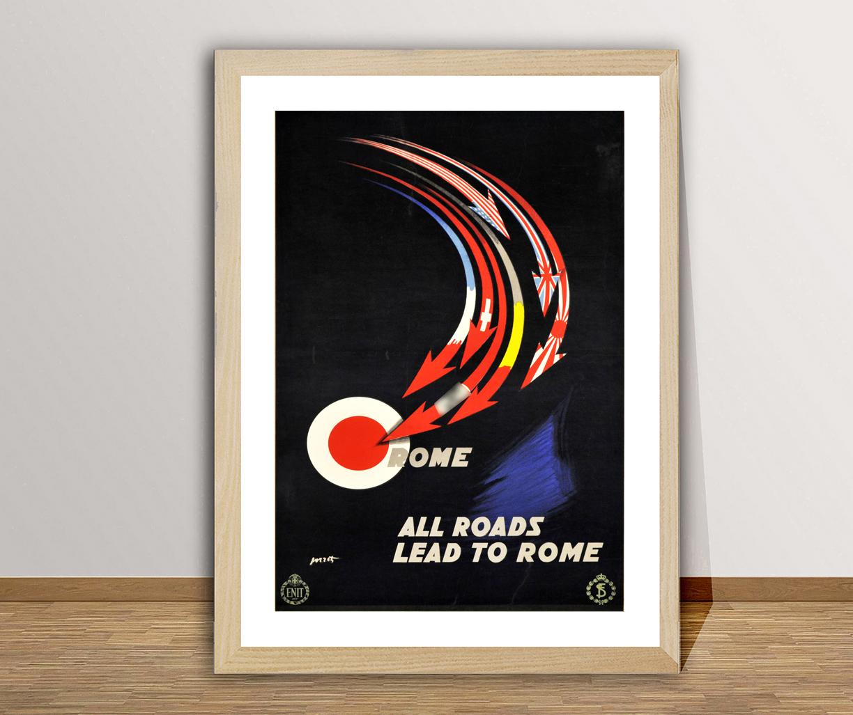 Vintage Rome Travel Poster: All Roads Lead to Rome