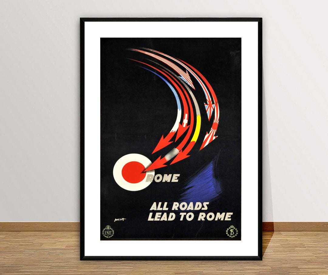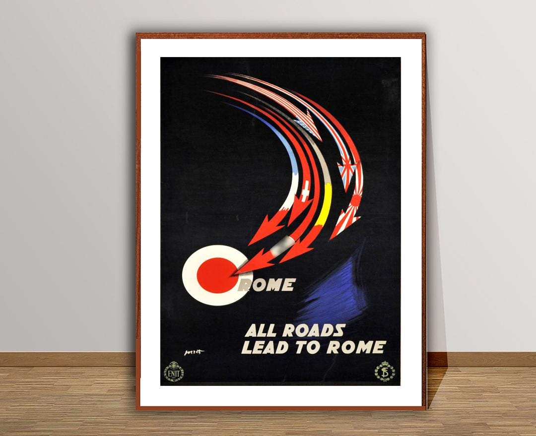 All Roads Lead to Rome Vintage Travel Poster - Poster Paper or Canvas Print / Gift Idea