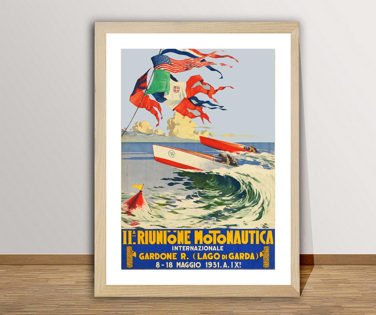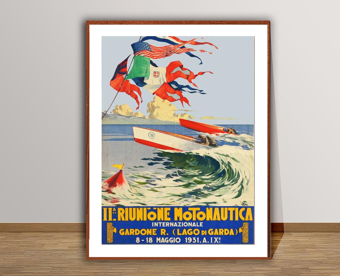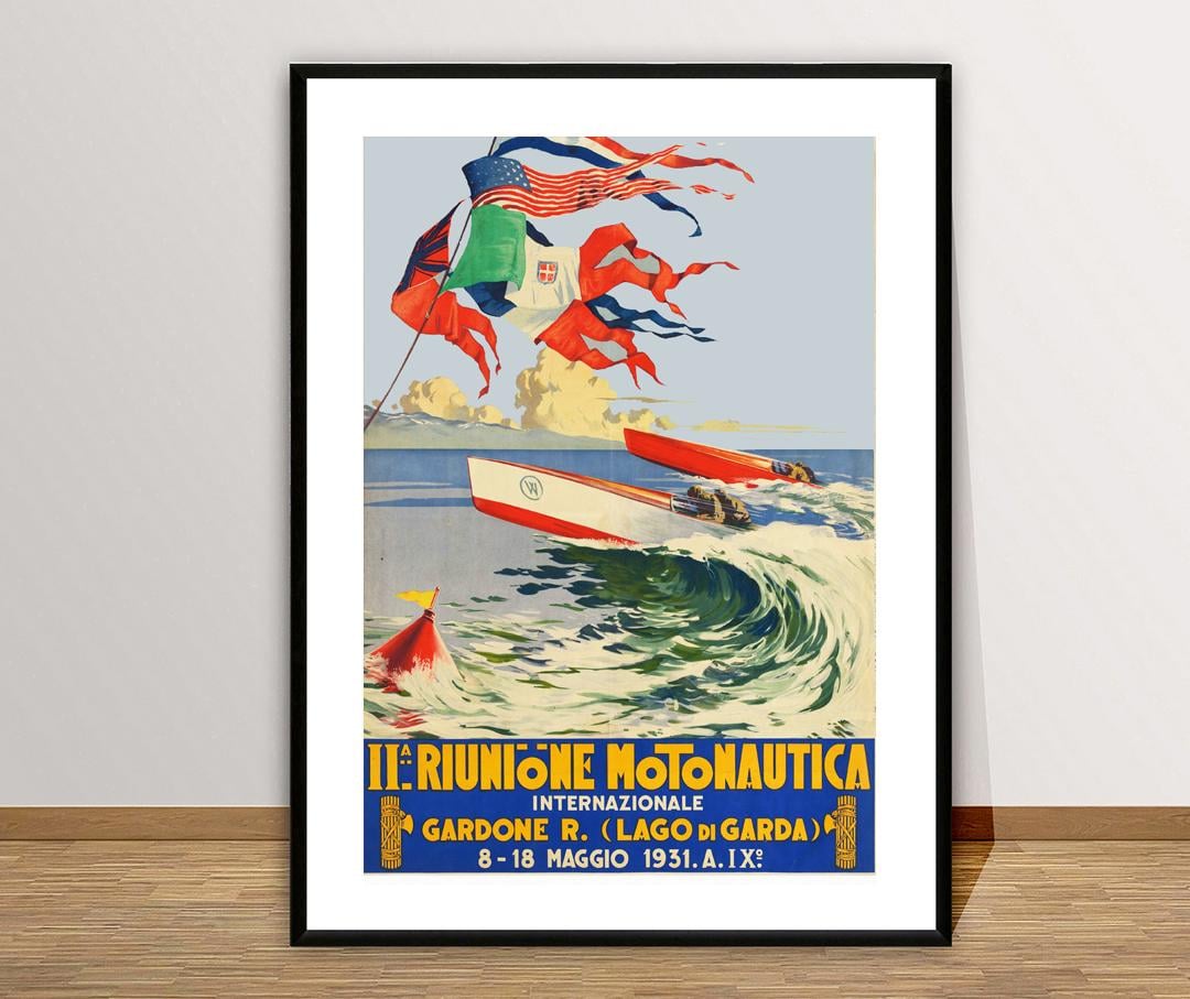 Vintage Motorboat Racing Poster: Lake Garda, Italy - Sports Wall Decor