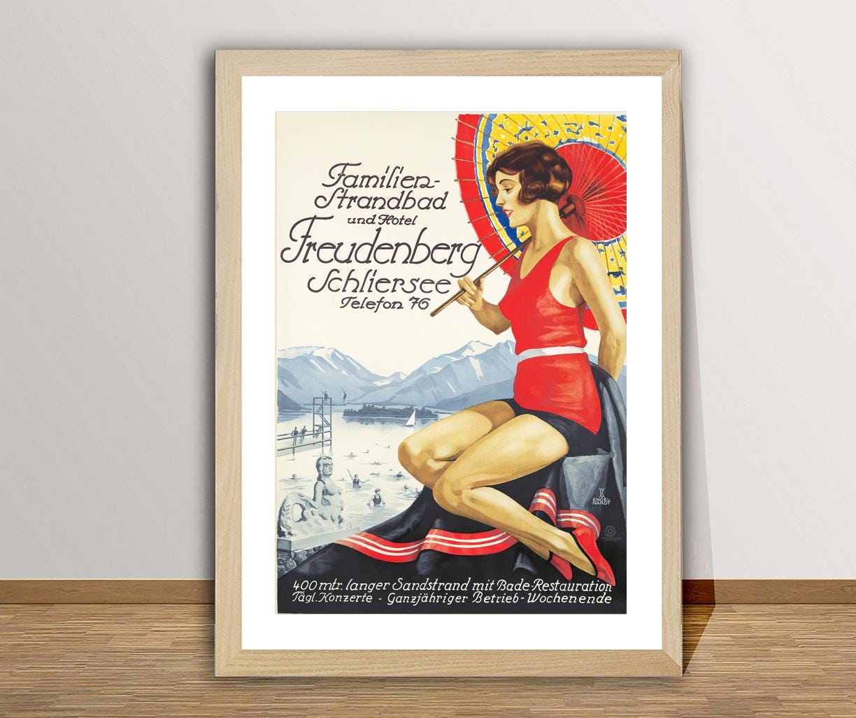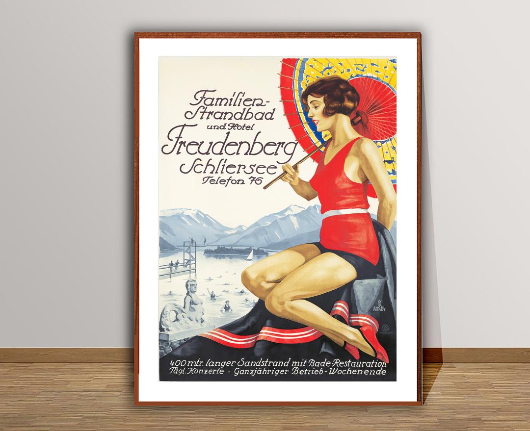 Familien Strandbad und Hotel Freudenberg Schliersee, Switzerland Vintage Travel Poster - Poster Paper or Canvas Print
