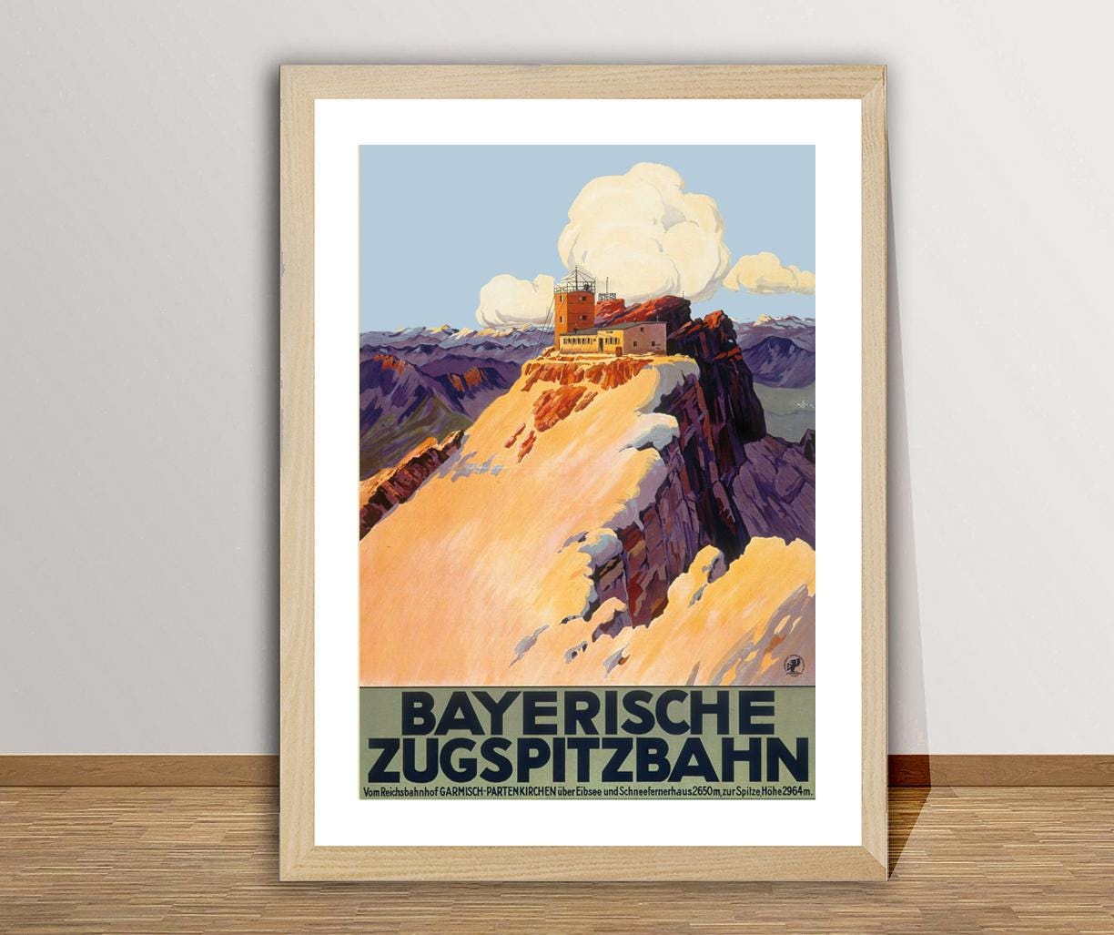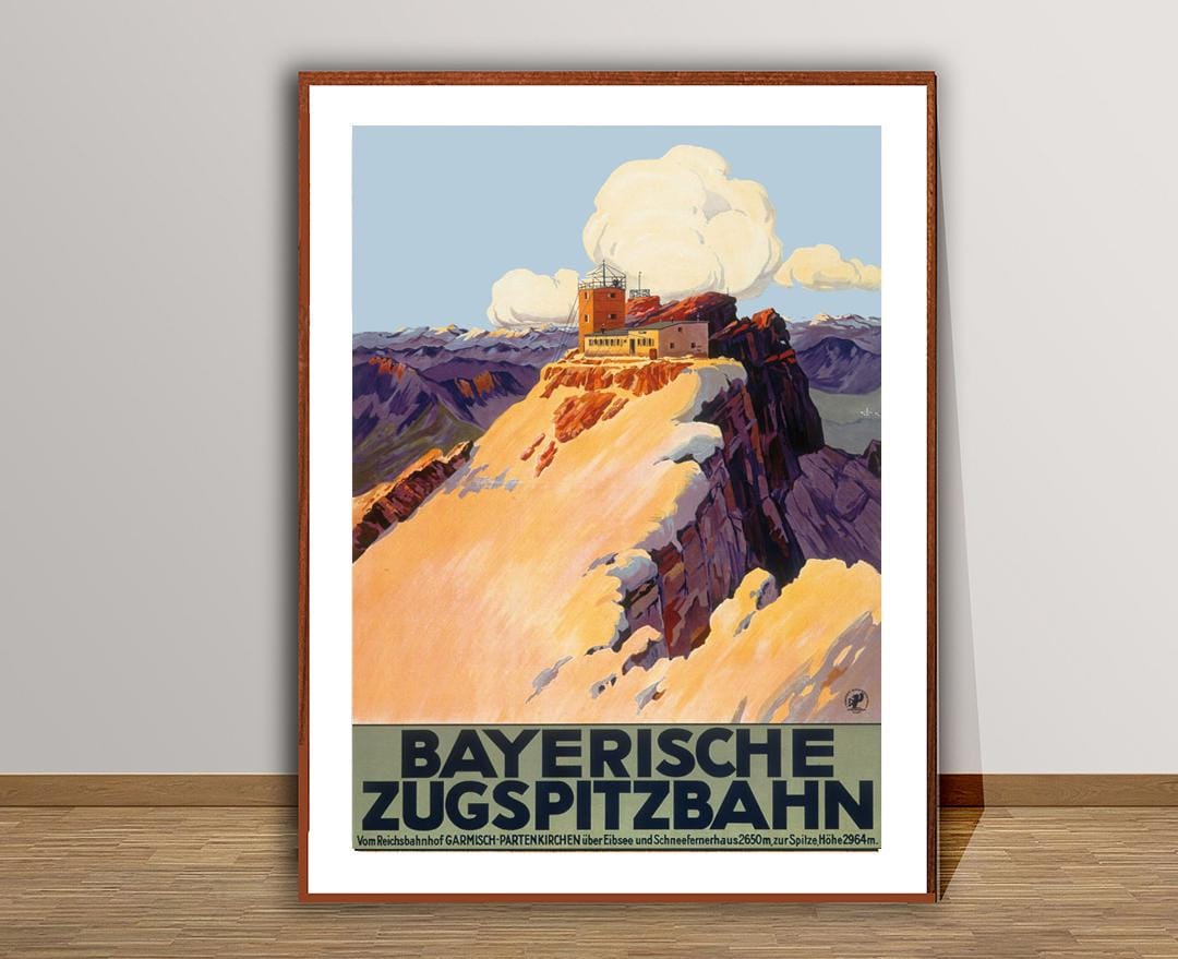 Bayerische Zugspitzbahn, Garmisch Partenkirchen Germany Vintage Travel Poste - Poster Paper or Canvas Print / Gift Idea
