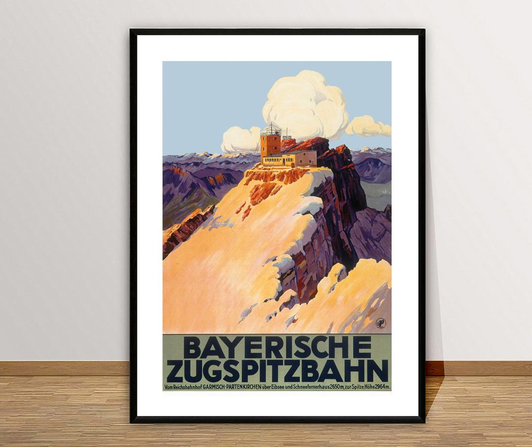 Zugspitzbahn Vintage Travel Poster: Garmisch-Partenkirchen Bavaria Print