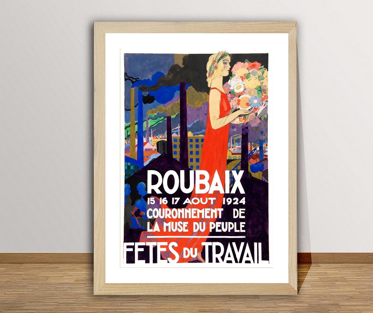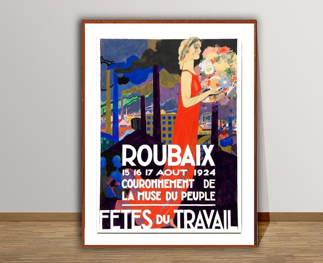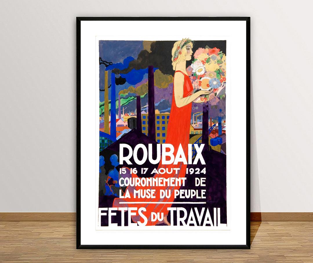 Roubaix Vintage Travel Poster: Fetes du Travail Print