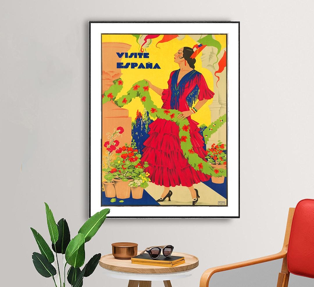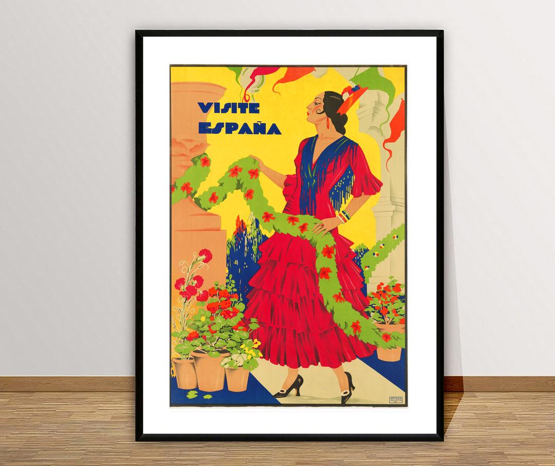 Visite Espana Vintage Travel Poster - Poster Paper or Canvas Print / Gift Idea
