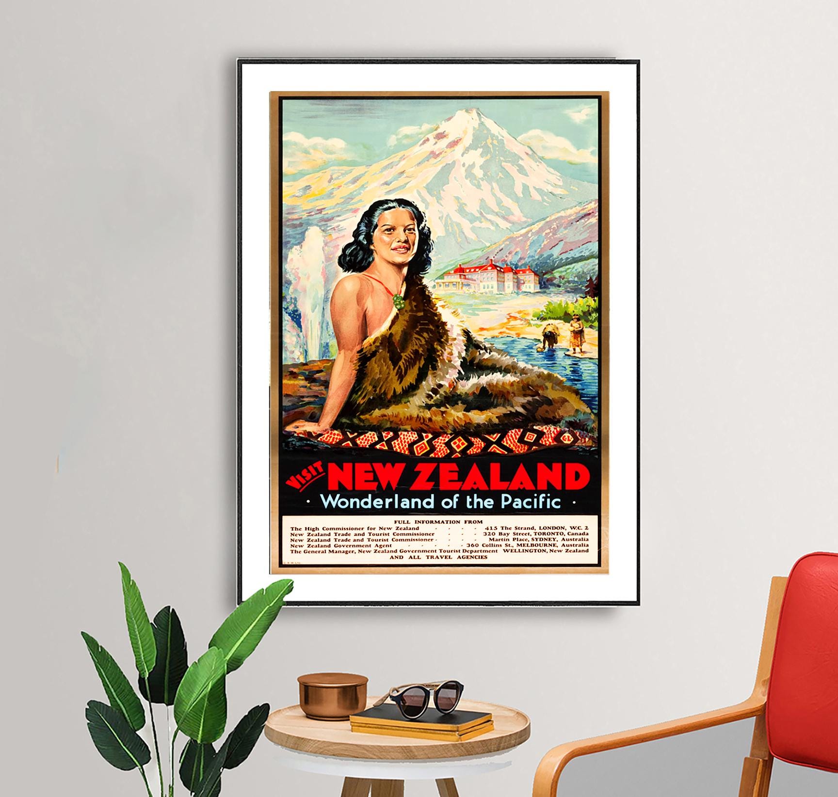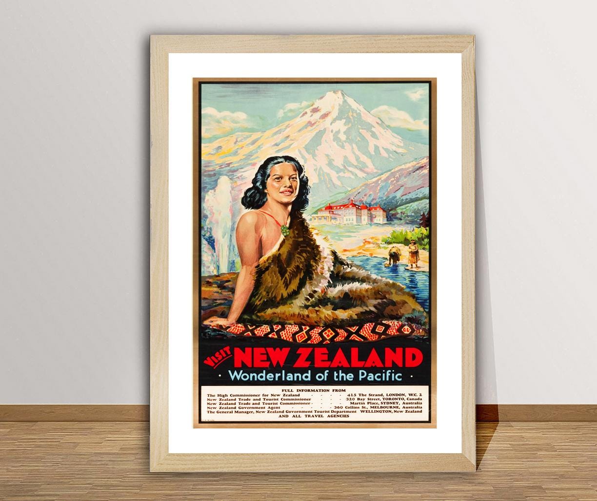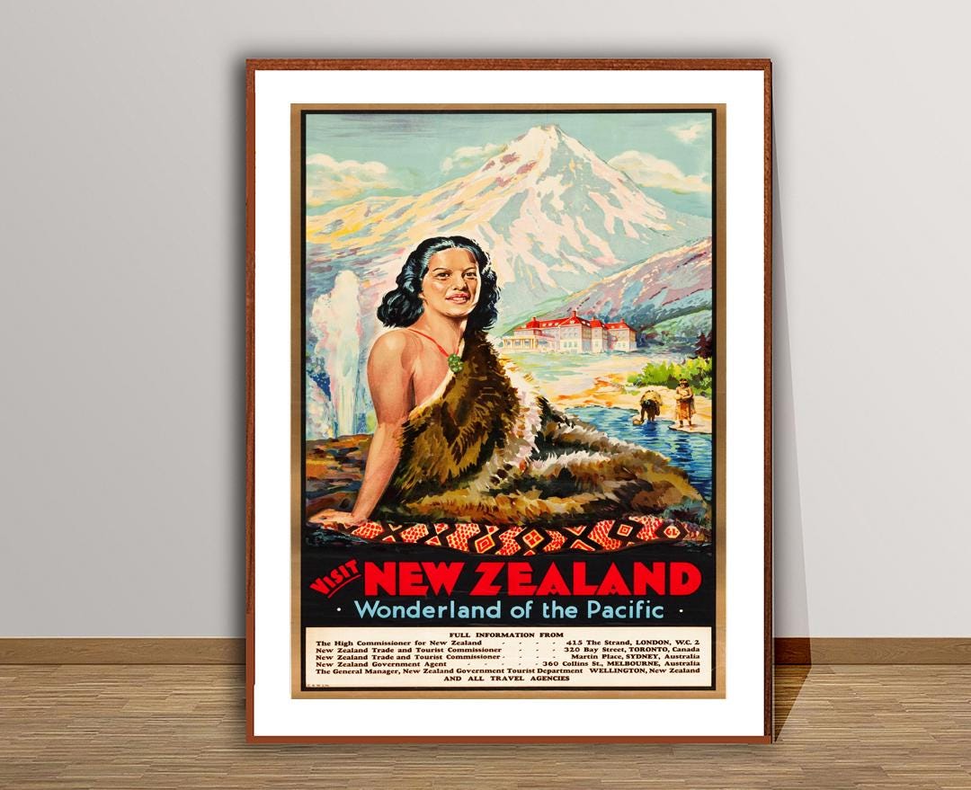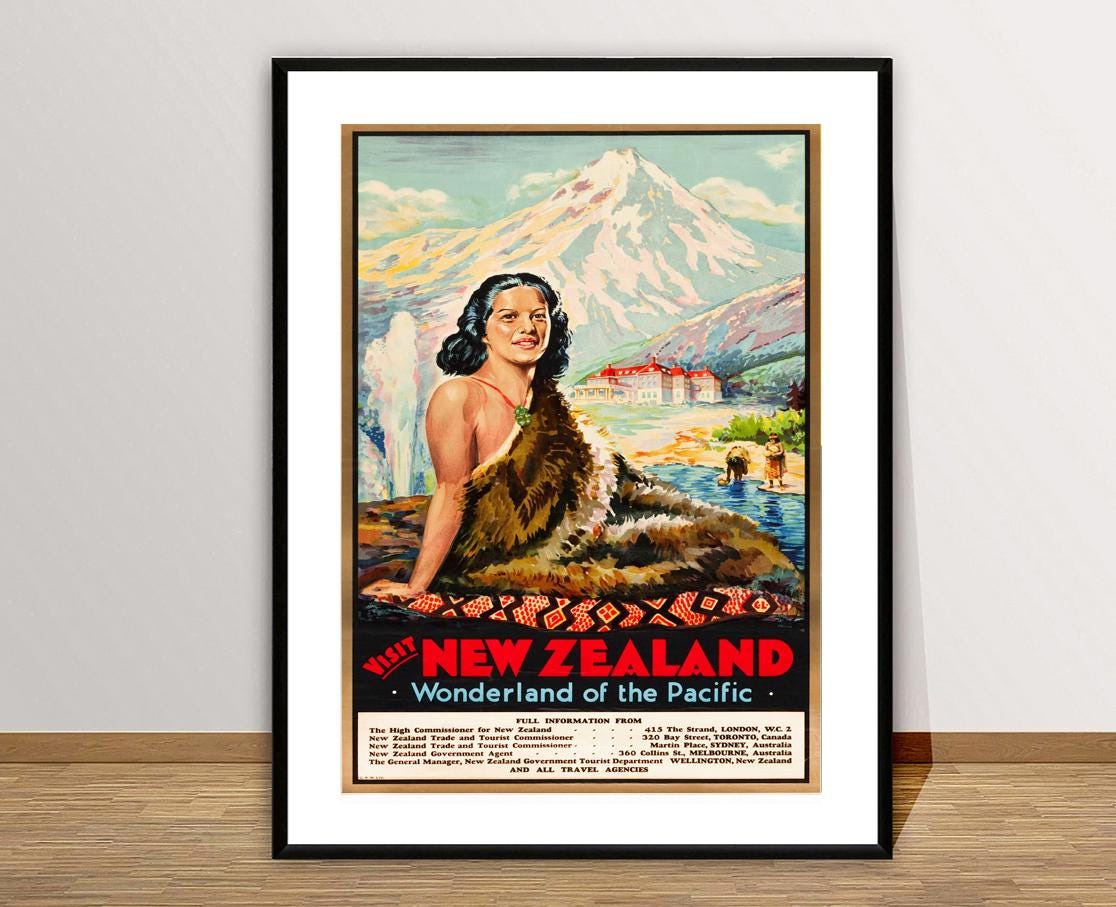 Visit New Zealand Wonderland of the Pacific Vintage Travel Poster - Poster Paper or Canvas Print