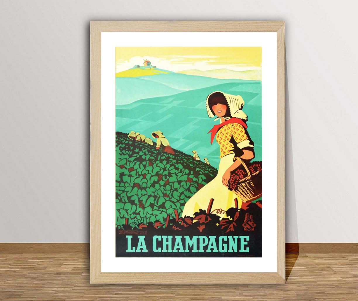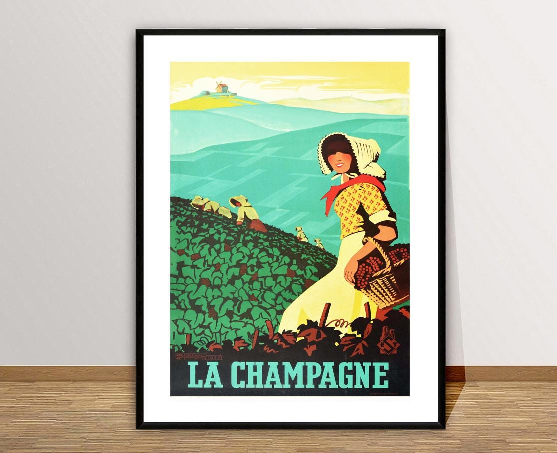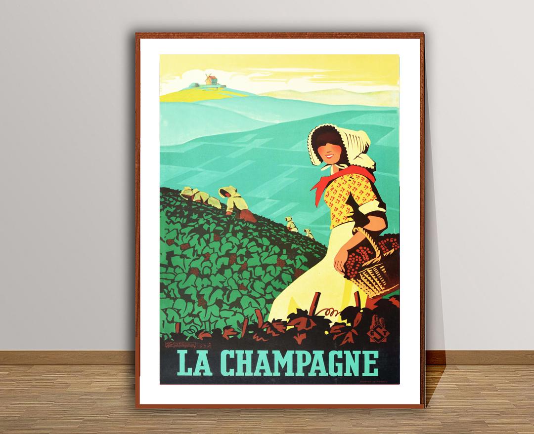 La Champagne, France Vintage Travel Poster - Poster Paper or Canvas Print / Gift Idea
