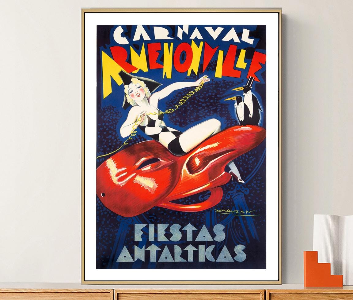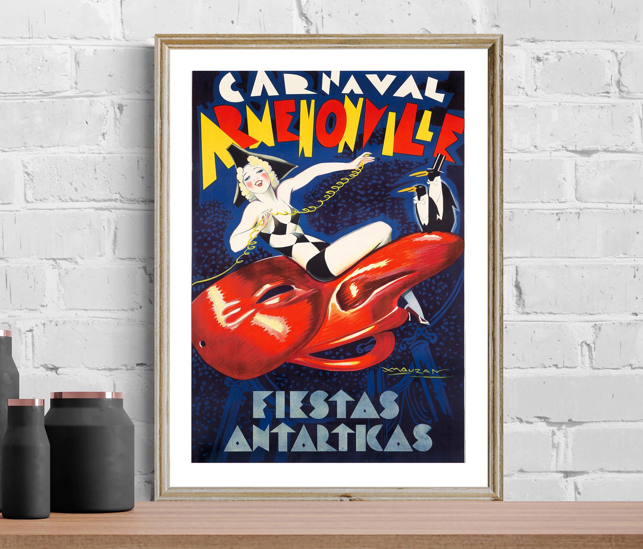 Carnaval Armenonville Fiestas Antartkas Vintage Travel Poster - Poster Paper or Canvas Print / Gift Idea