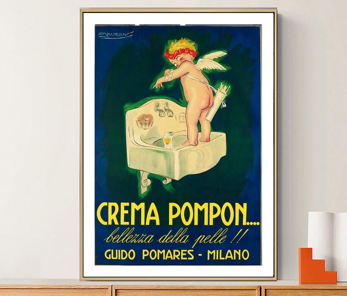 Vintage Crema Pompon Advertisement Art Print - Reproduction of a Vintage Artwork, Decorative Purposes Wall Decor - Poster Paper or Canvas Print