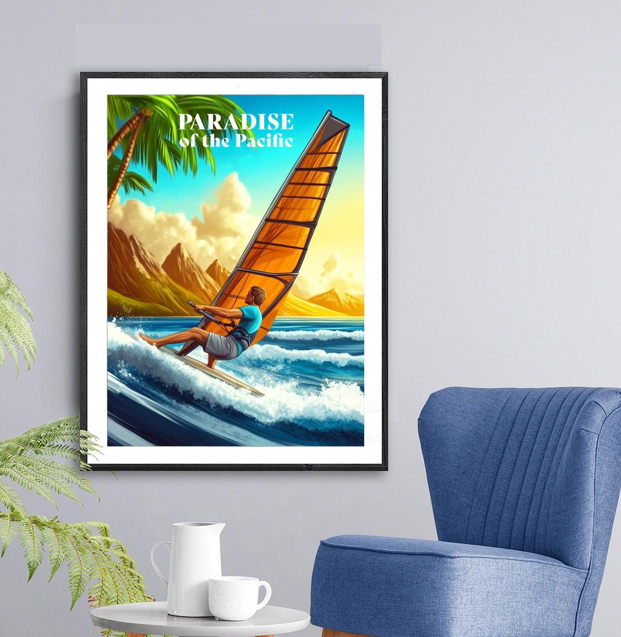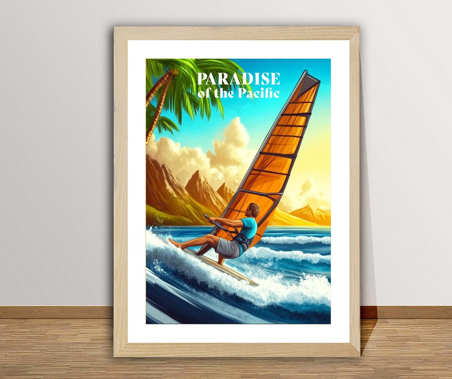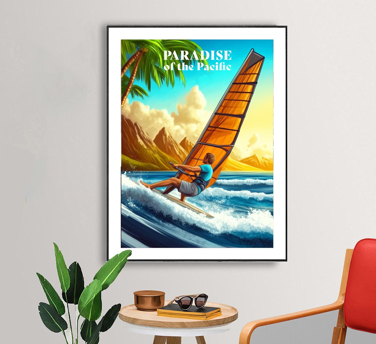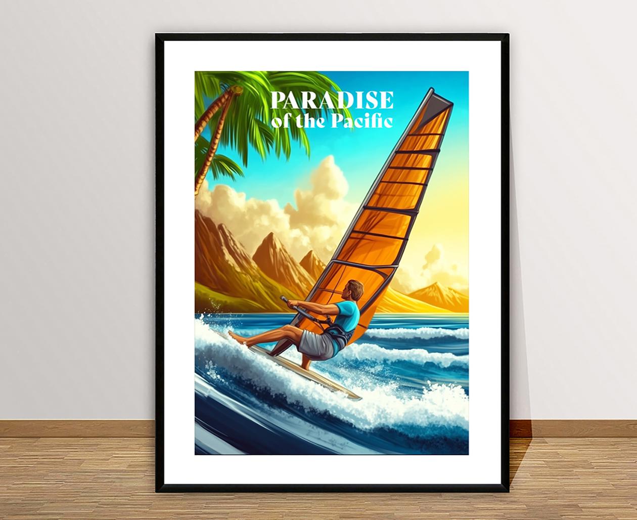 Hawaii Travel Poster: Windsurfing Art Print