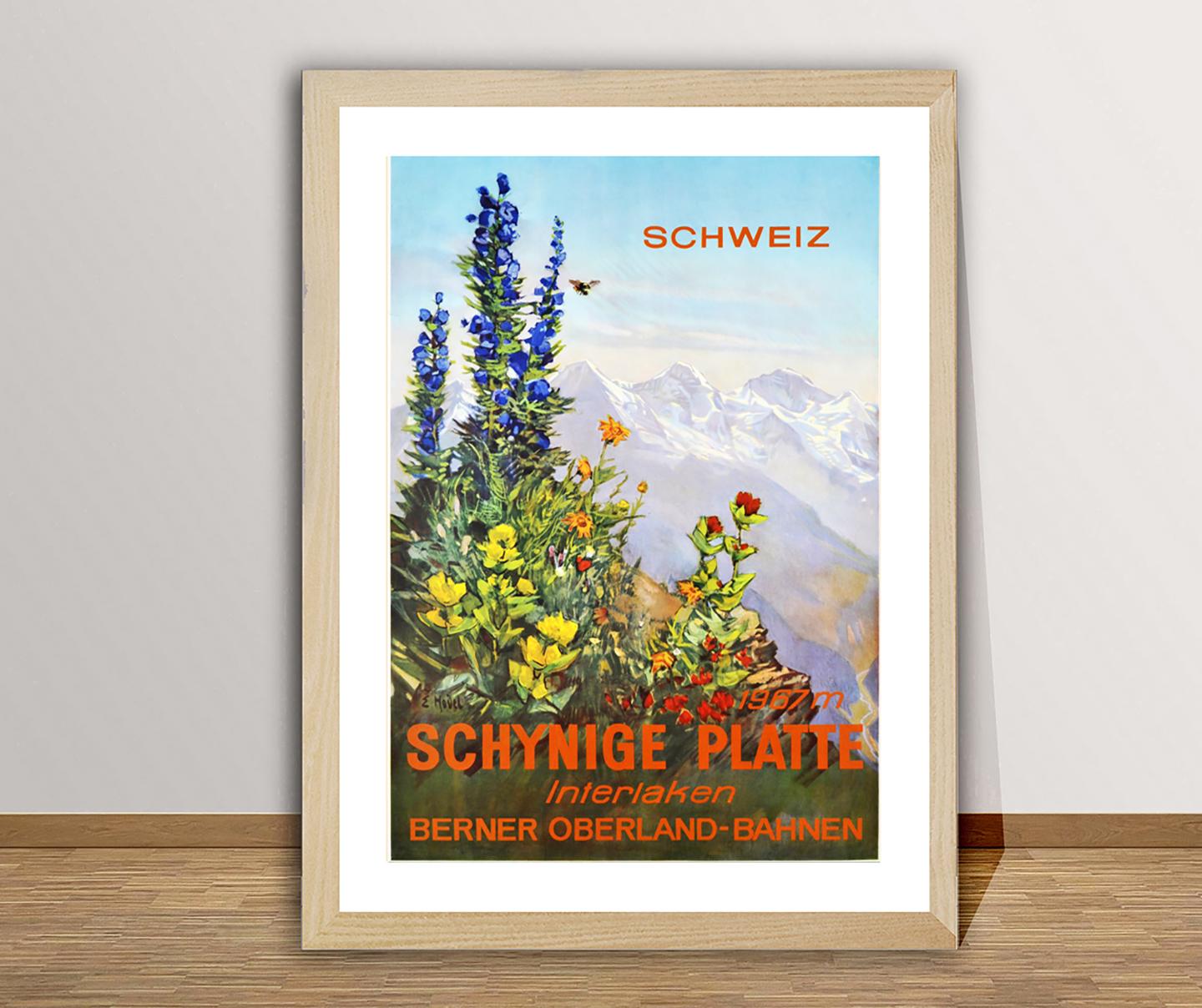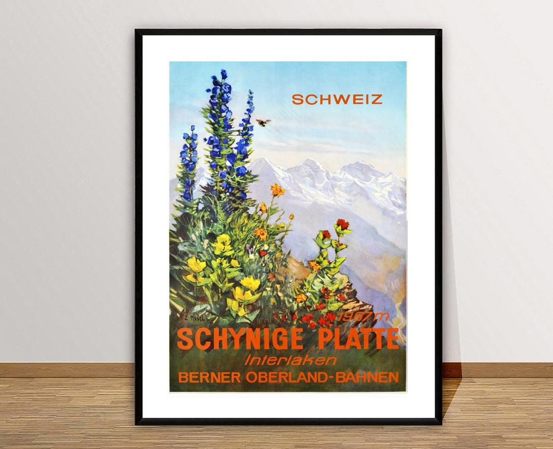 Schynige Platte Interlaken (Berner Oberland Bahn) Vintage Travel Poster- Poster Paper or Canvas Print / Gift Idea / Wall Decor