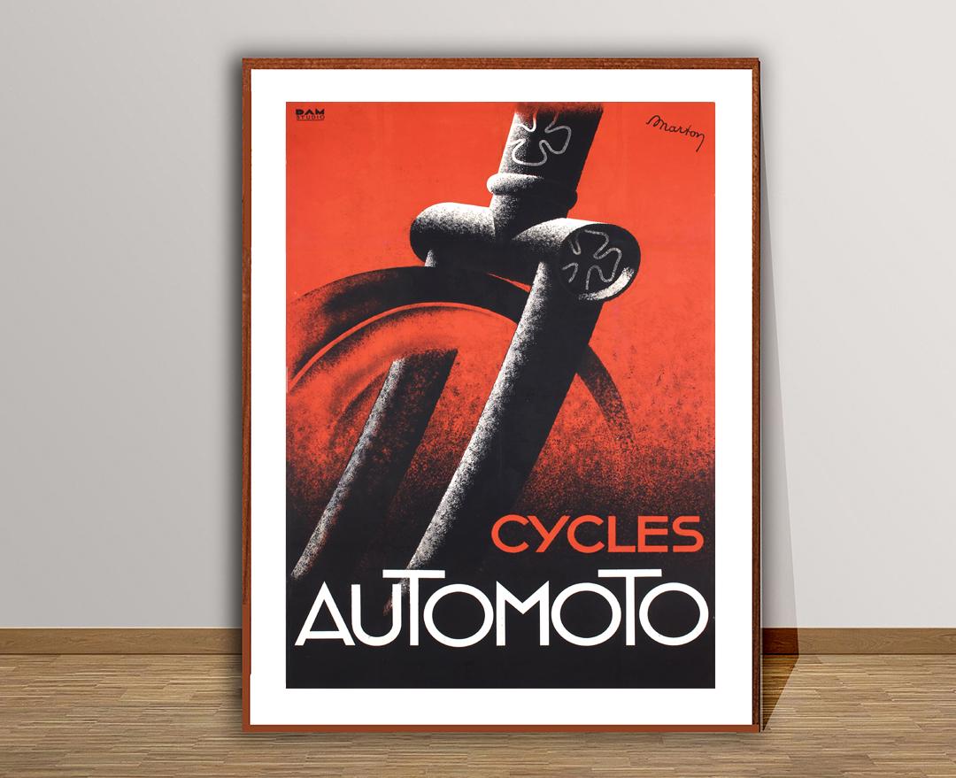 Cycles Automoto Vintage Bicycle Poster - Sport Poster / Gift Idea / Wall Decor