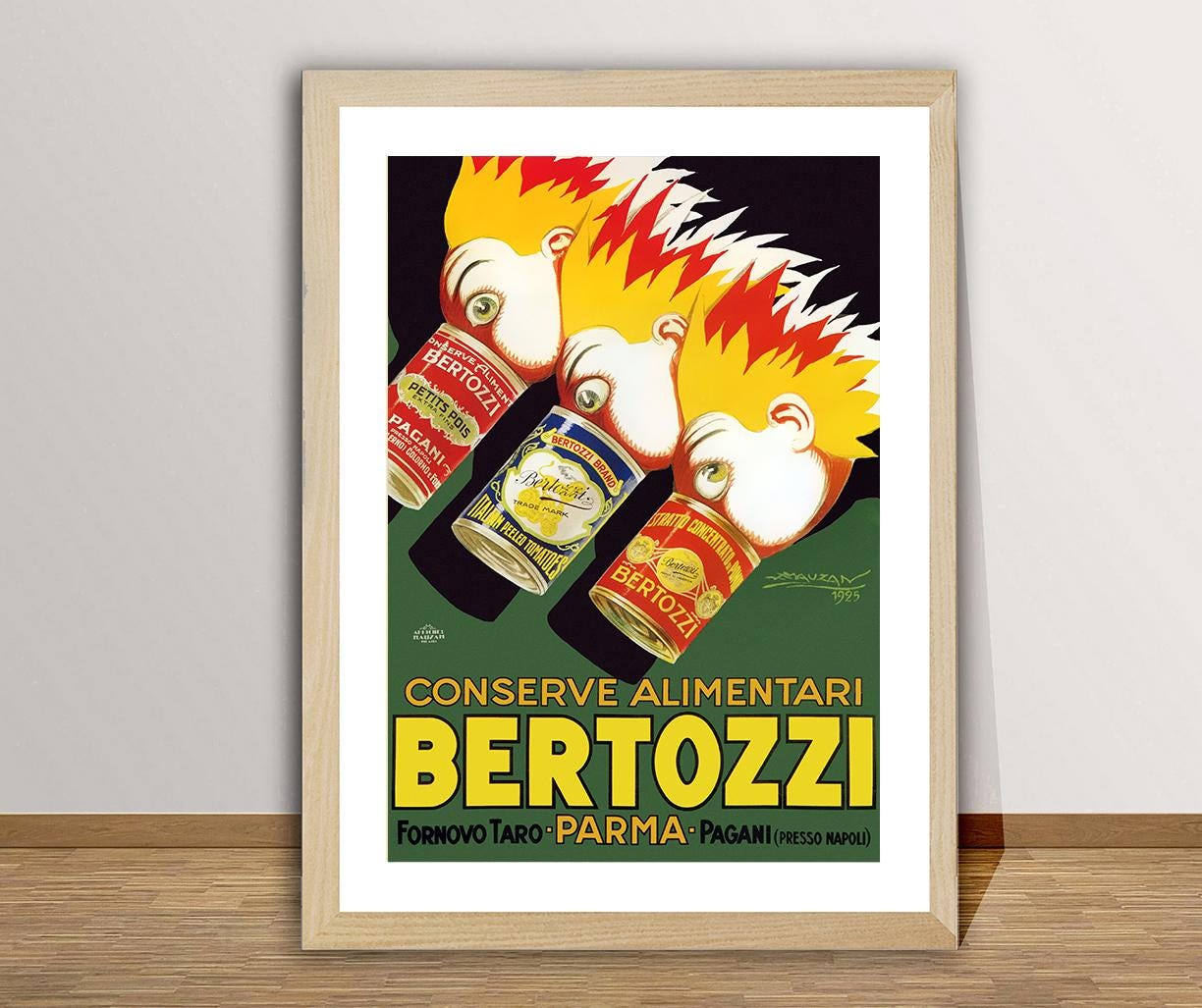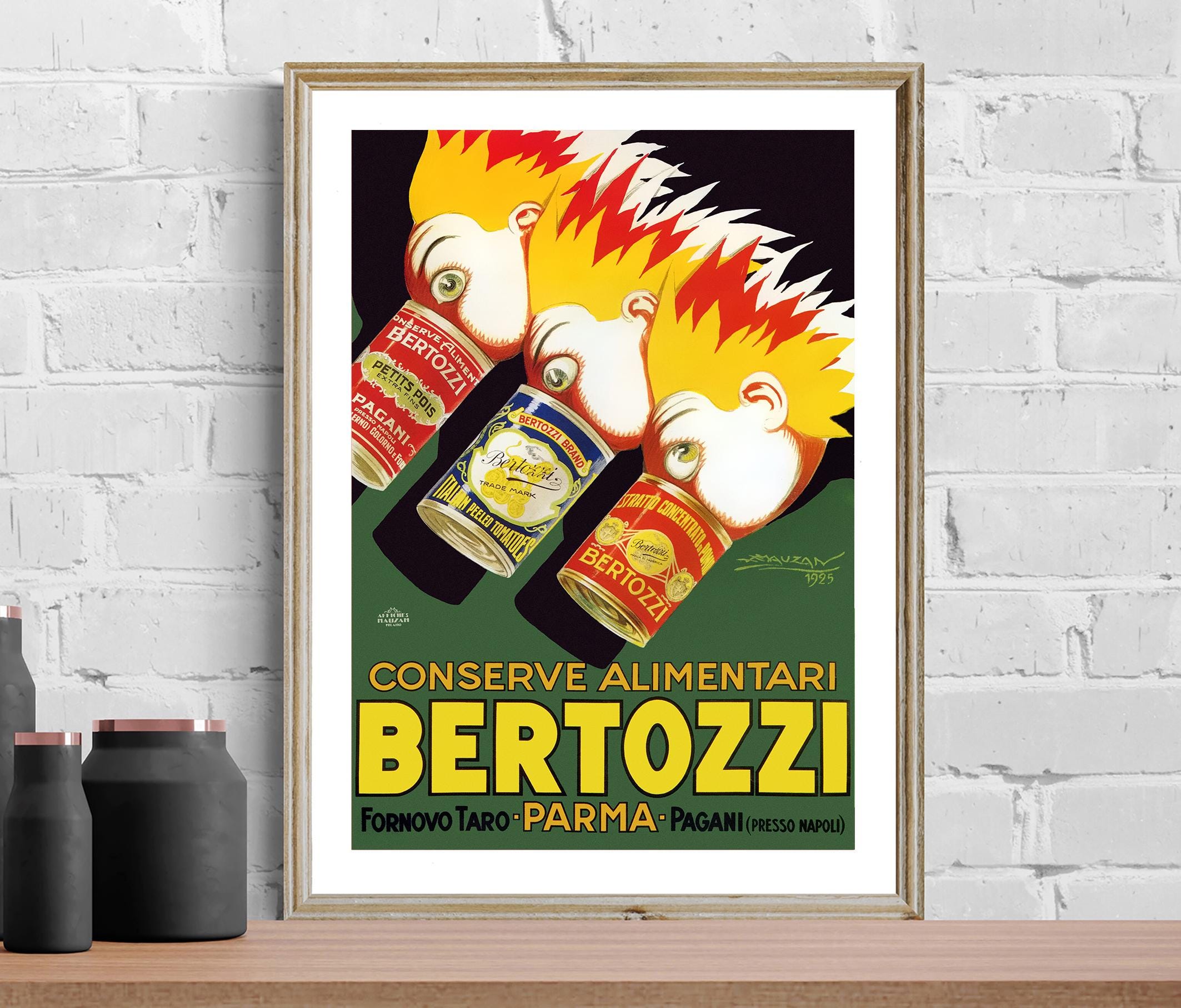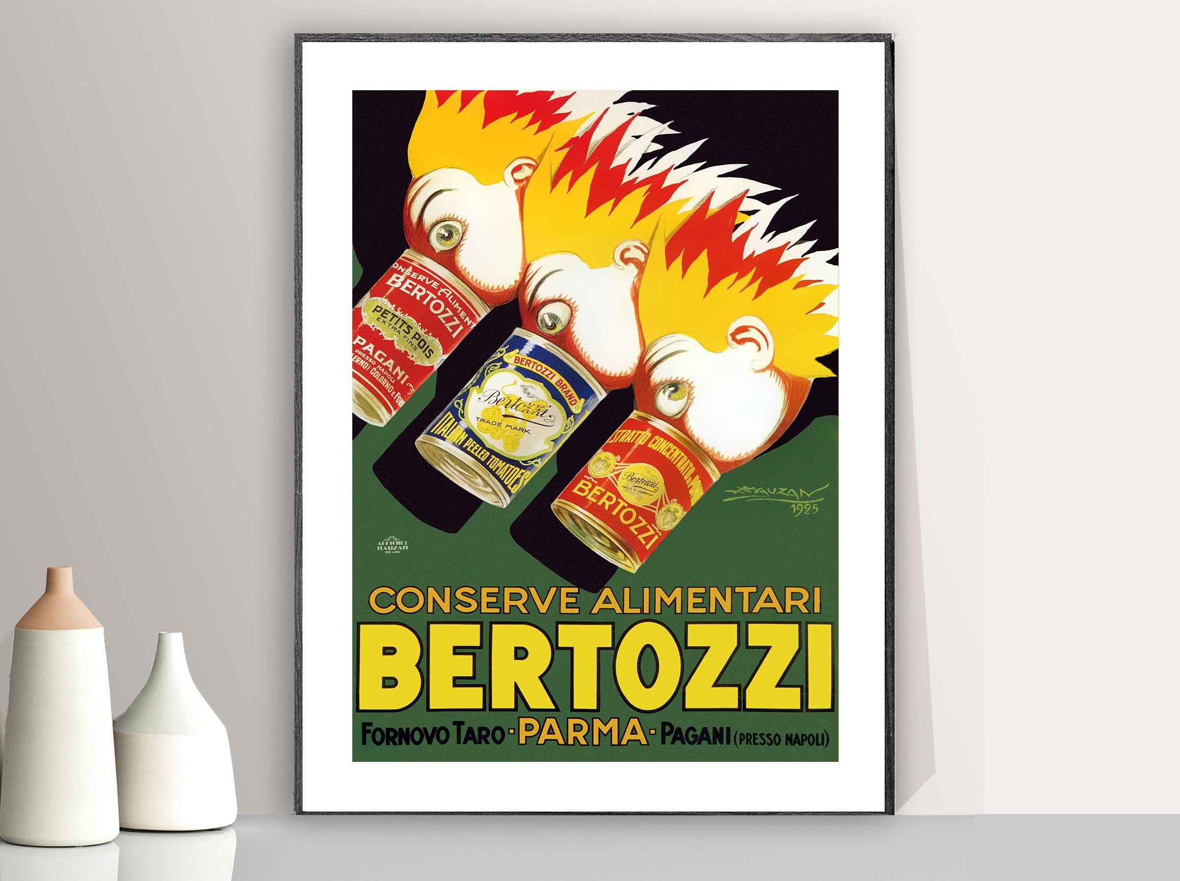 Vintage Conserve Alimentari Bertozzi Advertisement Art Print - Reproduction of a Vintage Artwork, Decorative Purposes Wall Decor