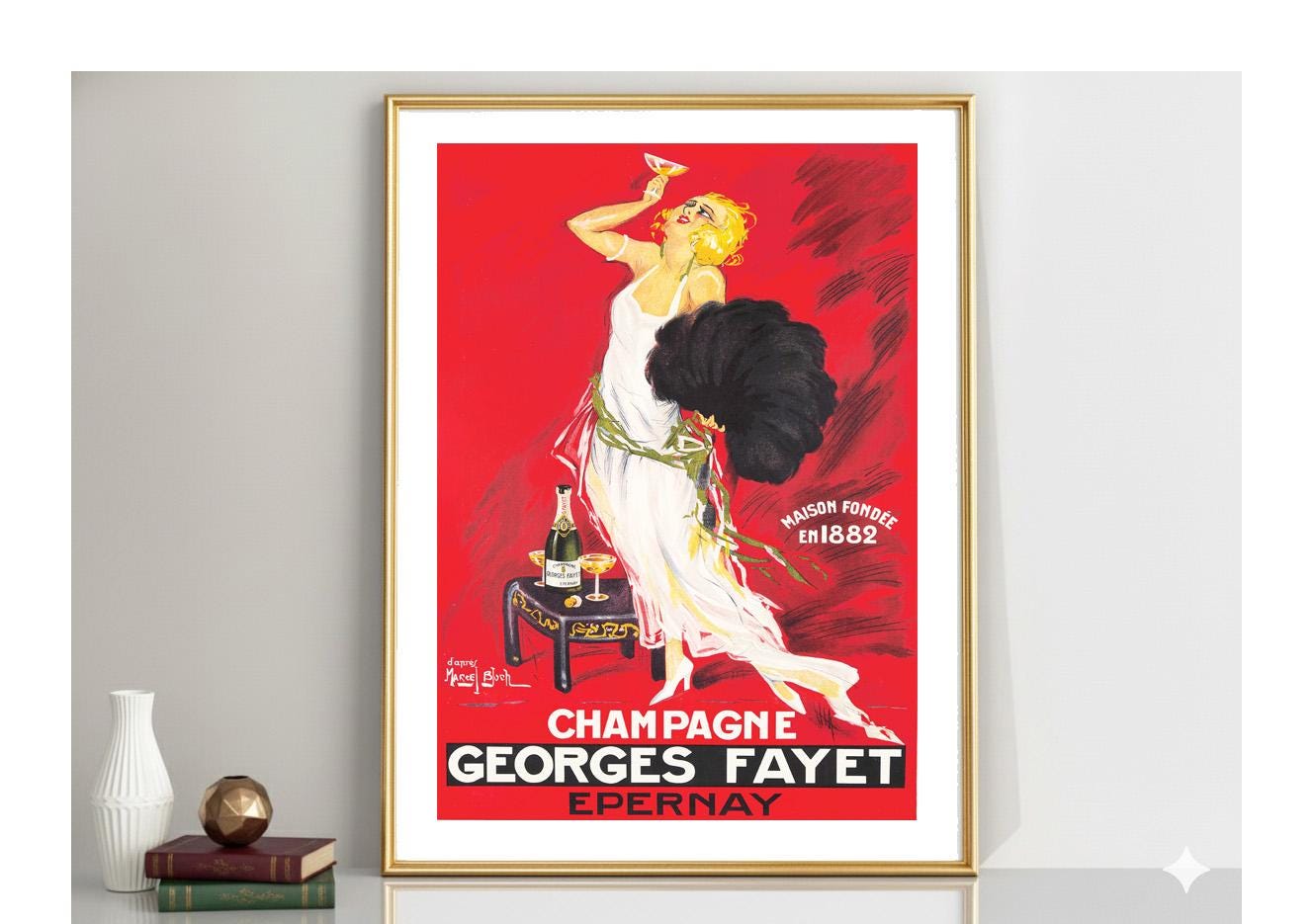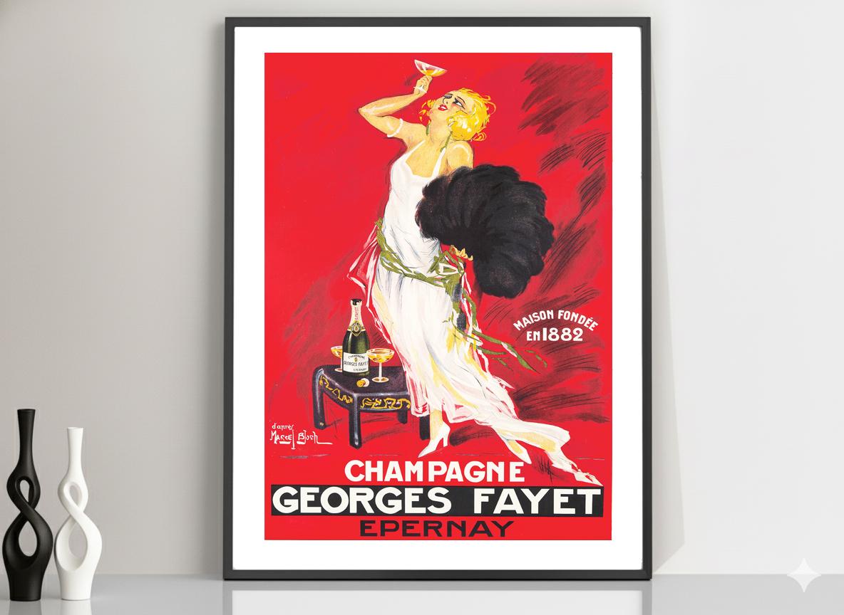 Vintage Champagne Georges Fayet, Epernay Advertisement Art Print - Reproduction of a Vintage Artwork, Decorative Purposes Wall Decor - Poster Paper or Canvas Print / Gift Idea / Wall Decor