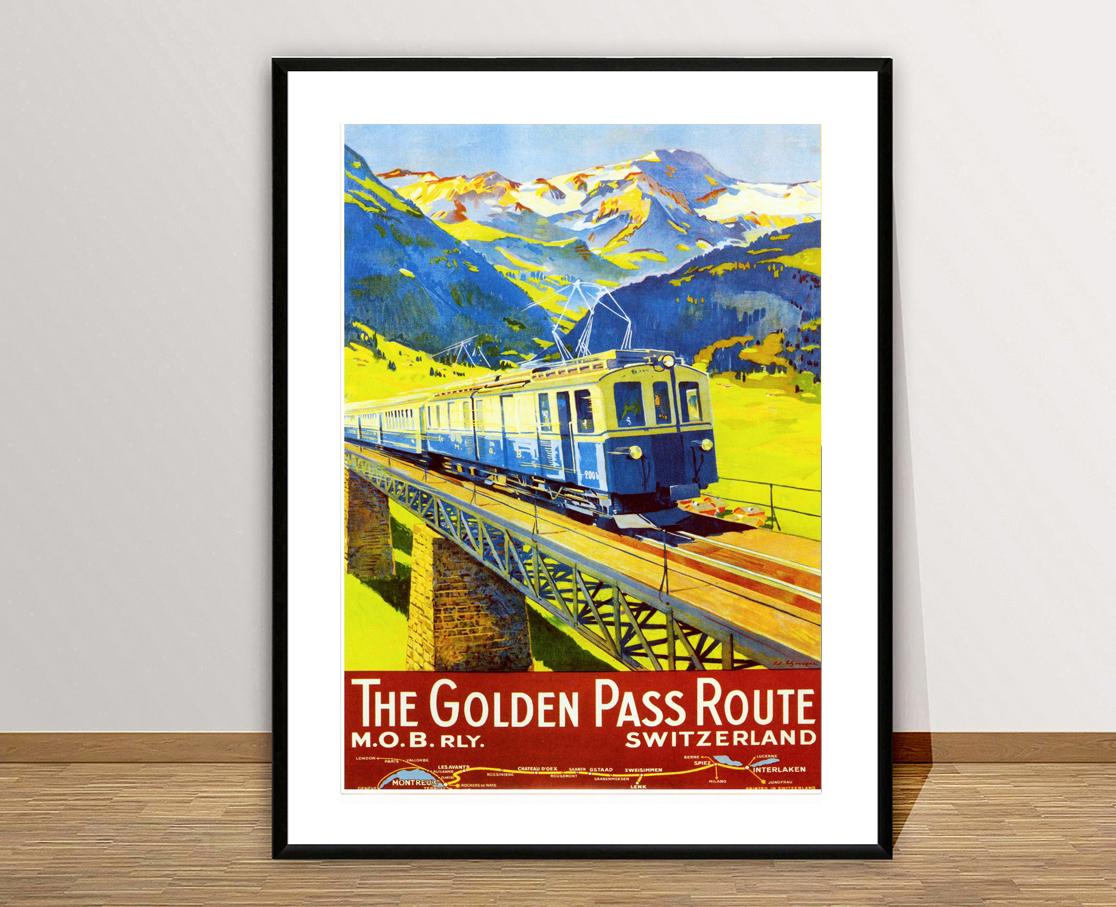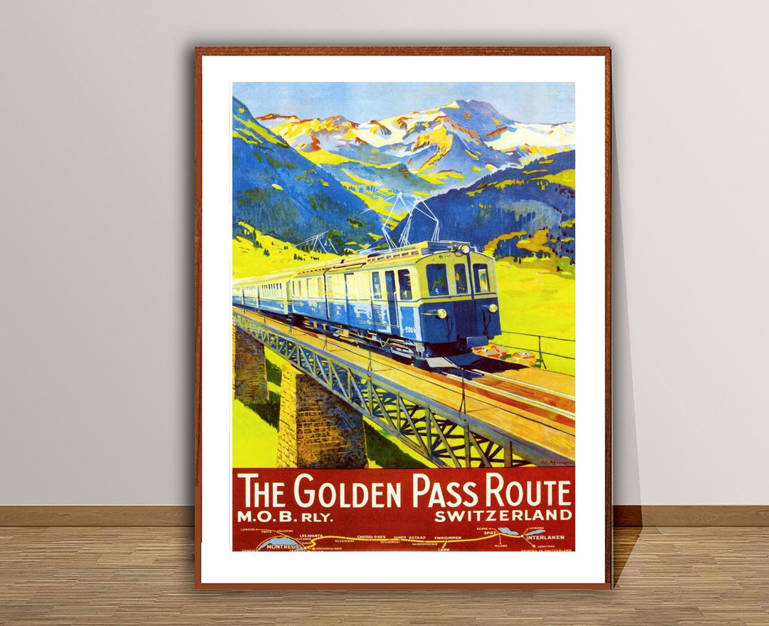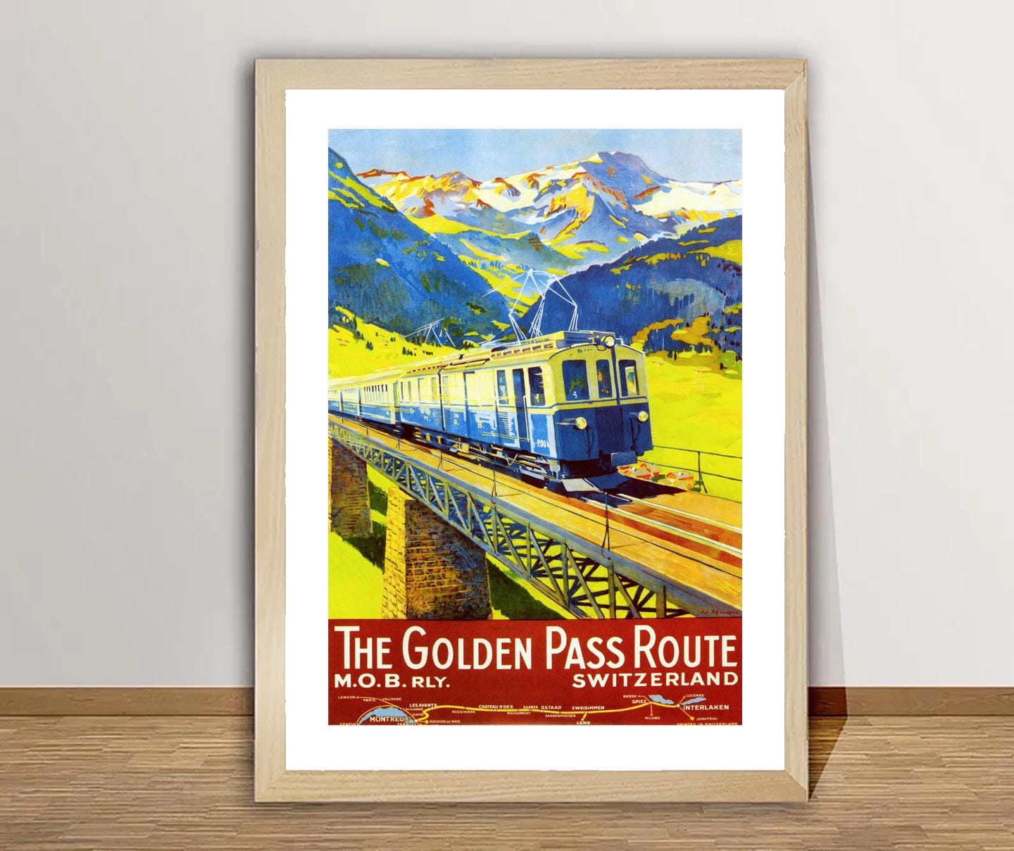 Golden Pass Route Vintage Travel Poster: Suisse Wall Decor