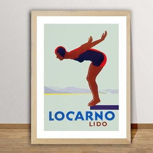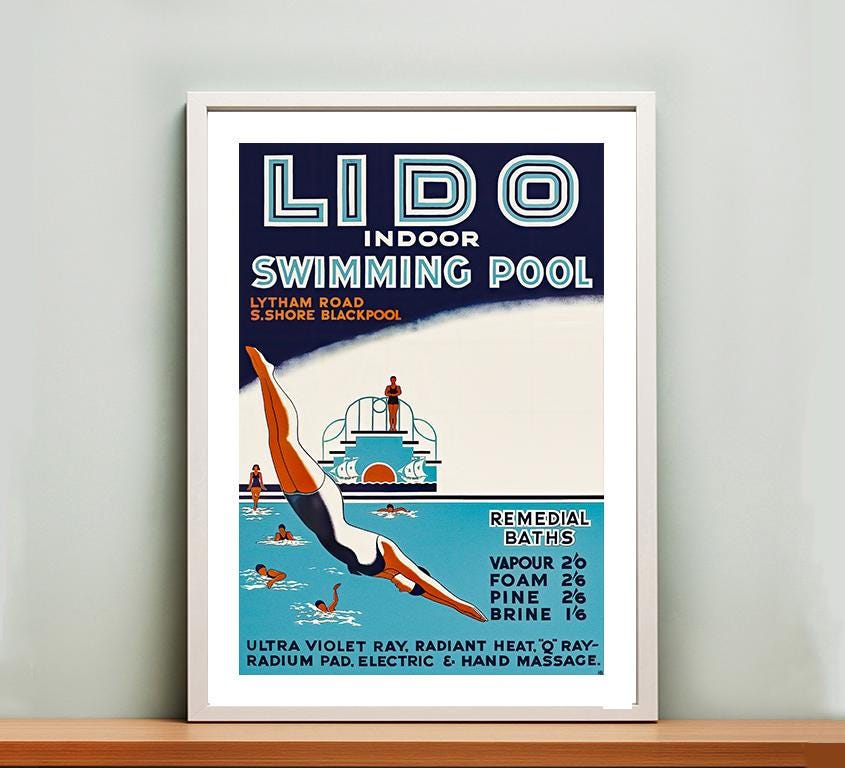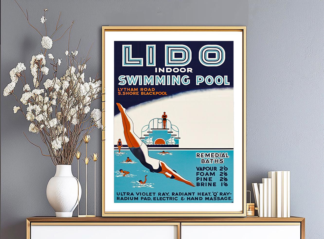 Vintage Lido Indoor Swimming Pool Travel Poster Art Print