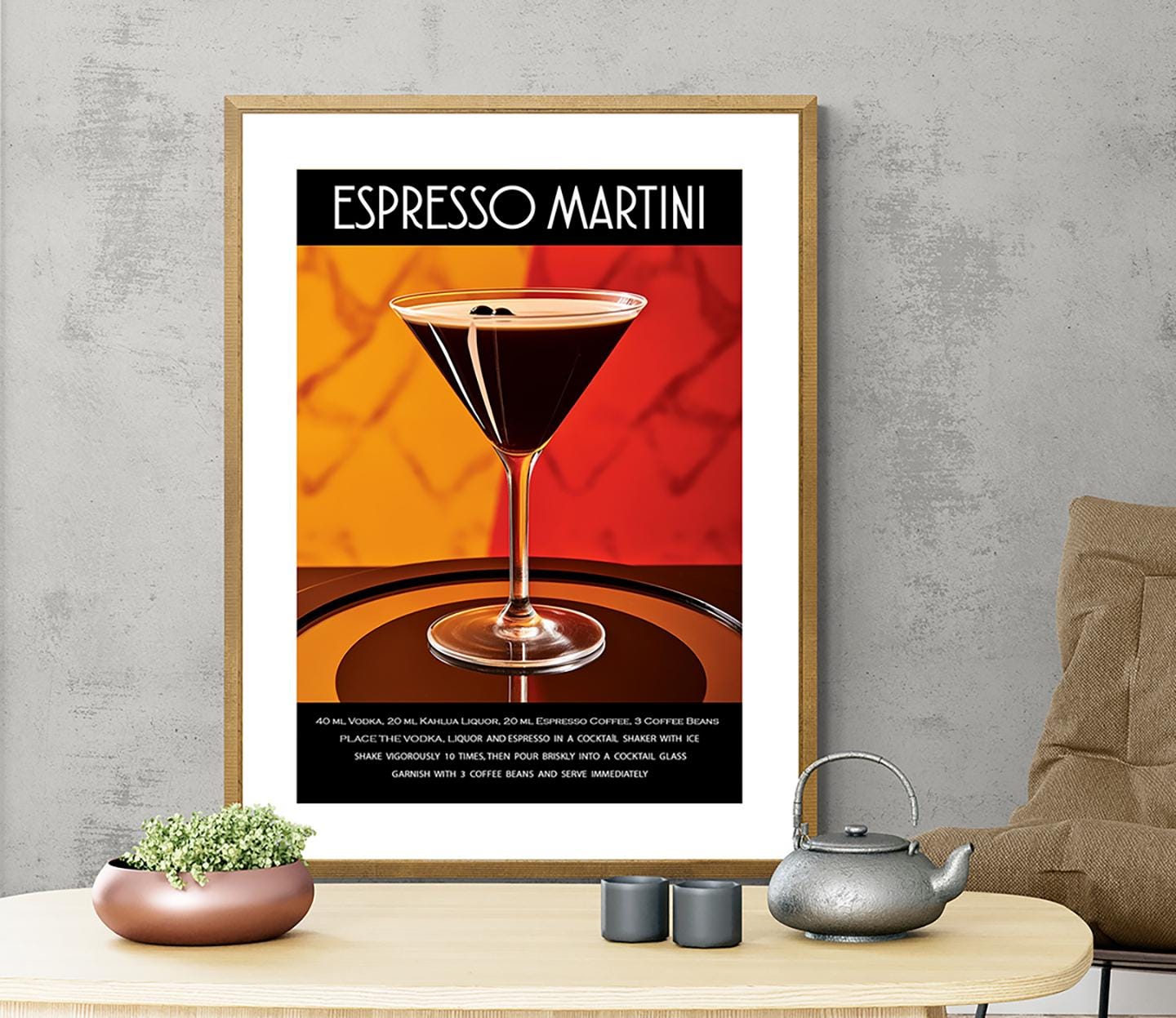 Espresso Martini Recipe Vintage Food&Drink Poster - Poster Paper or Canvas Print / Gift Idea