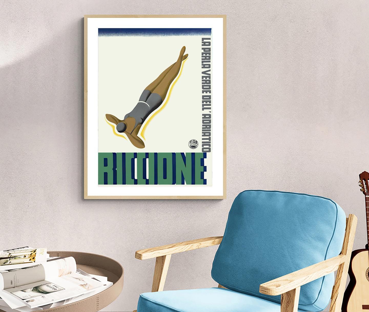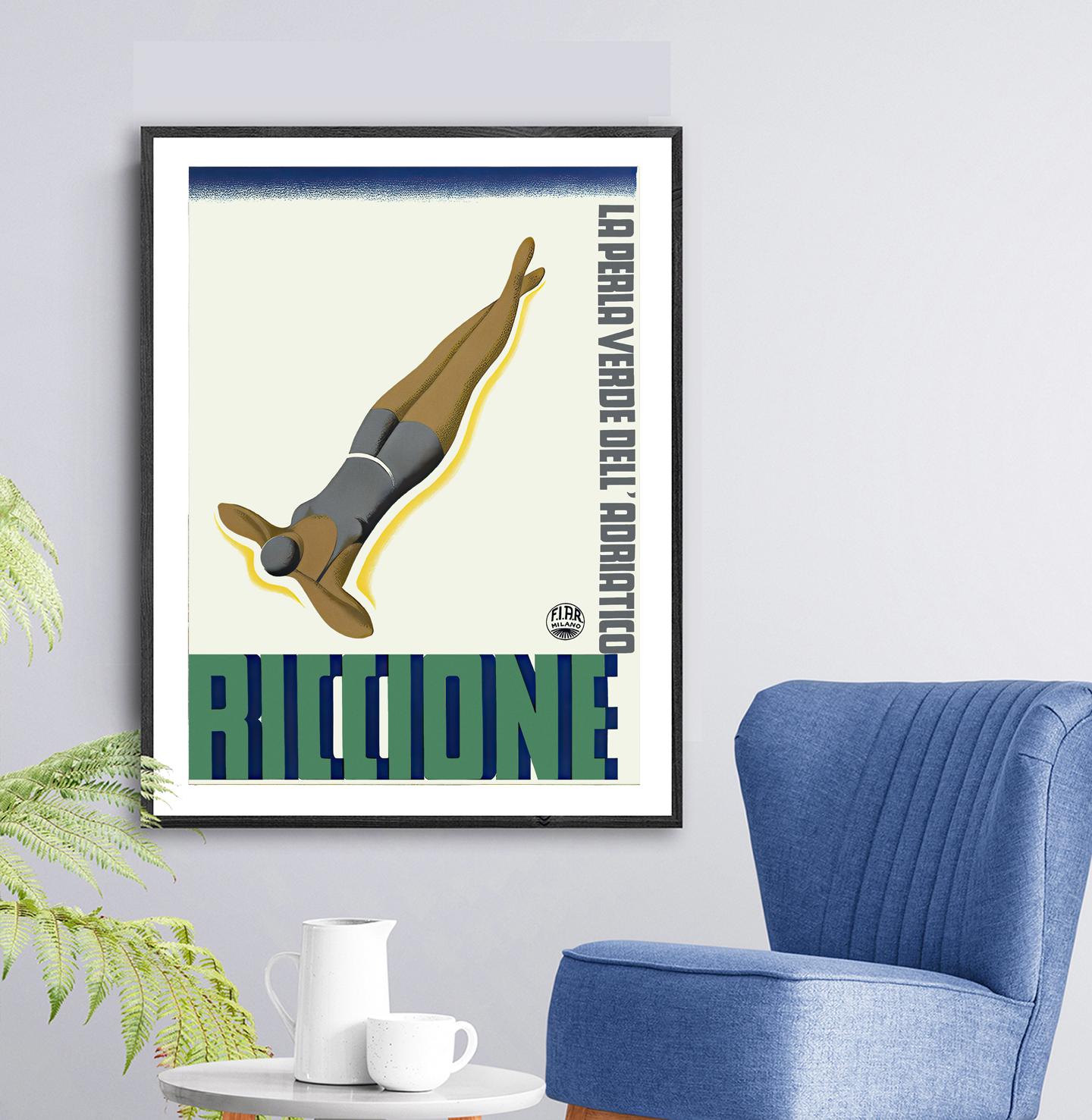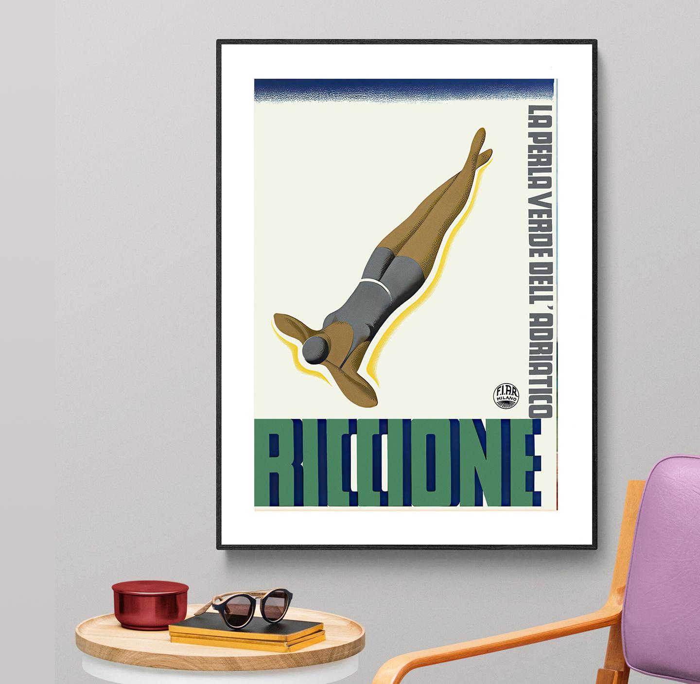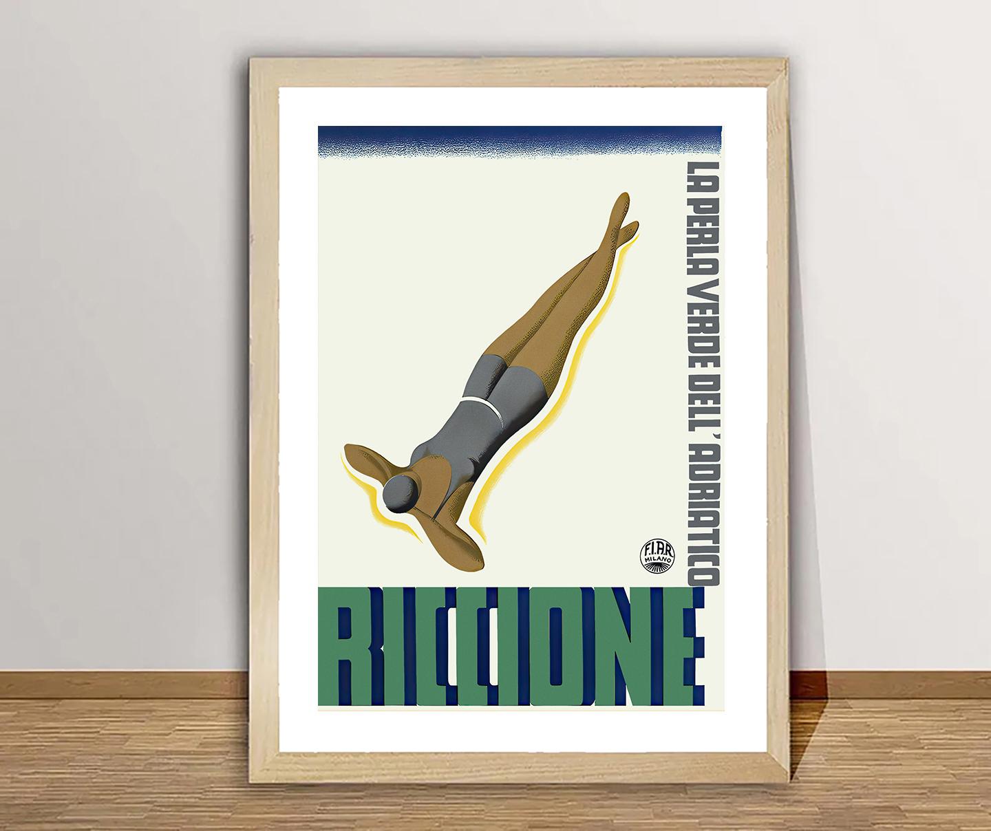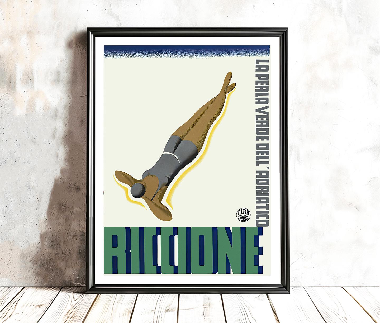 Riccione Italy Vintage Travel Poster: Adriatic Coast Wall Art