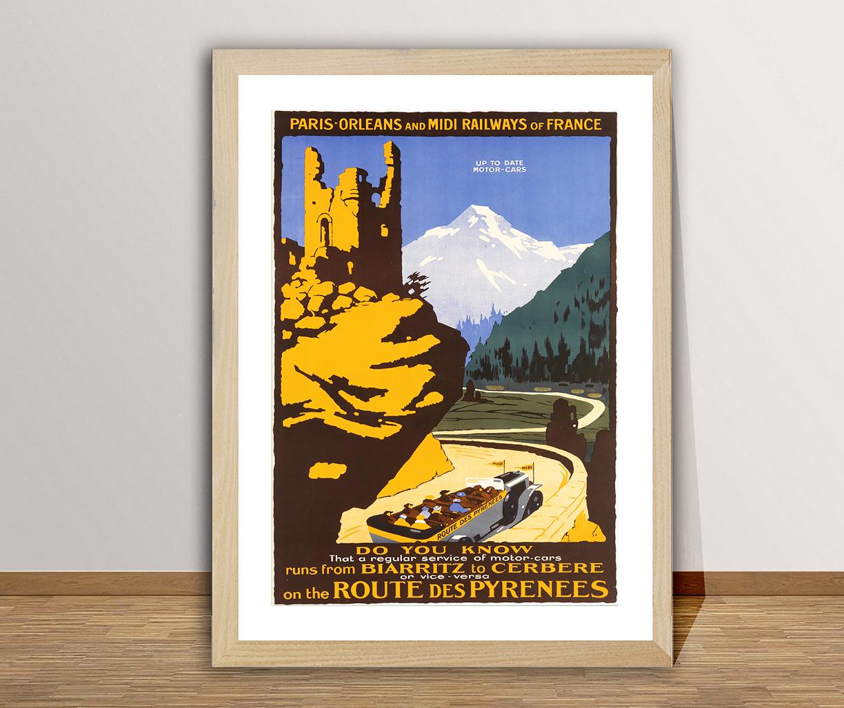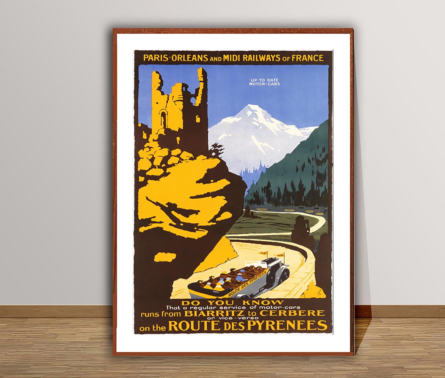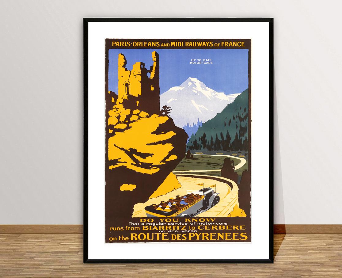 Vintage Route des Pyrenees Travel Poster: Biarritz to Cerbere