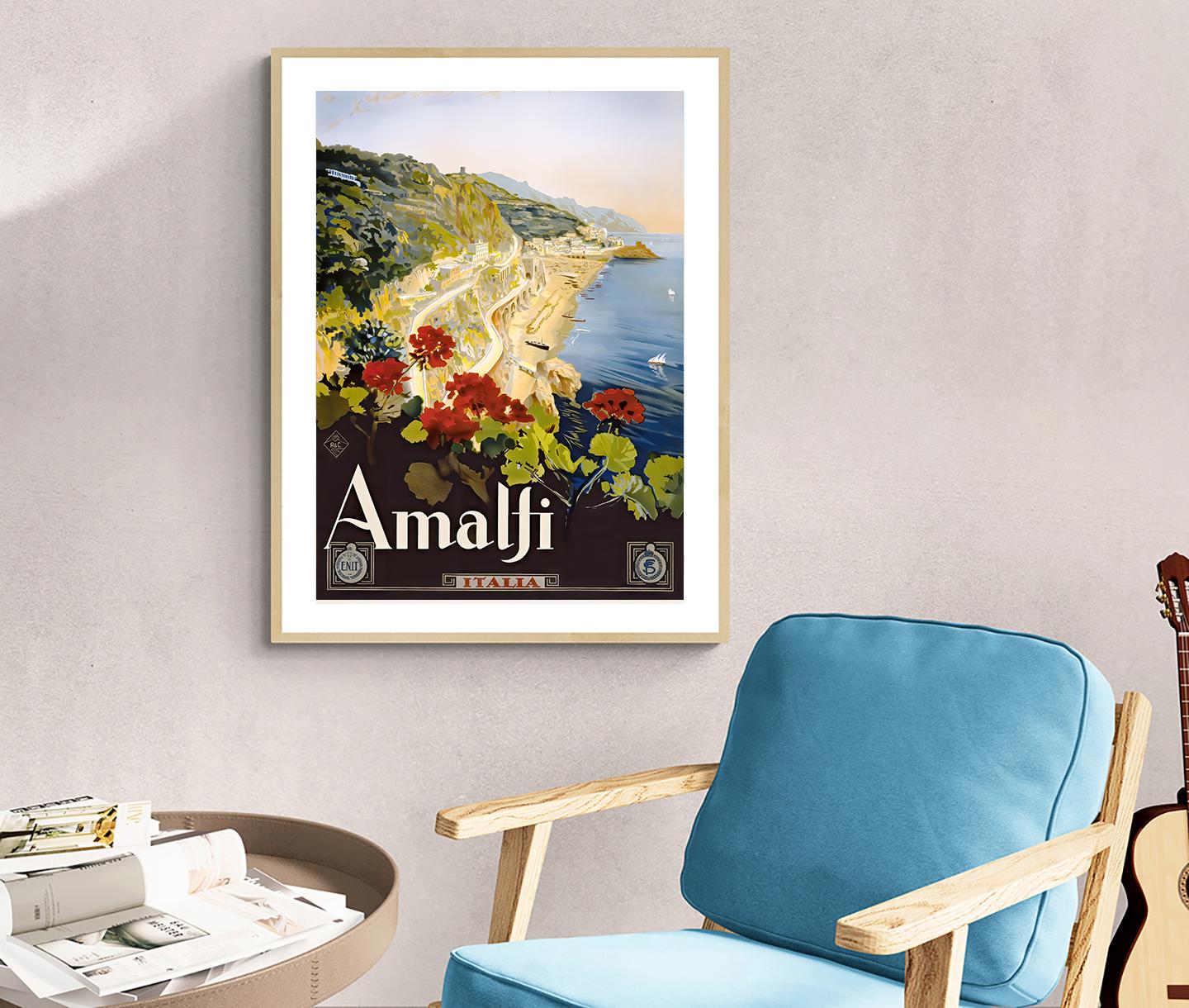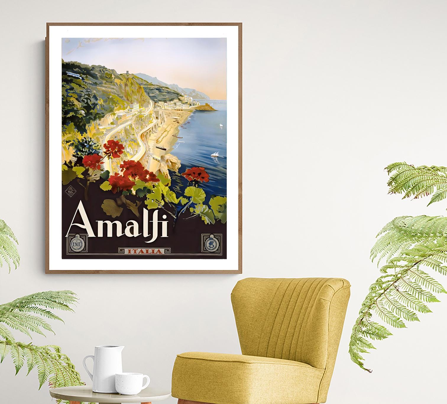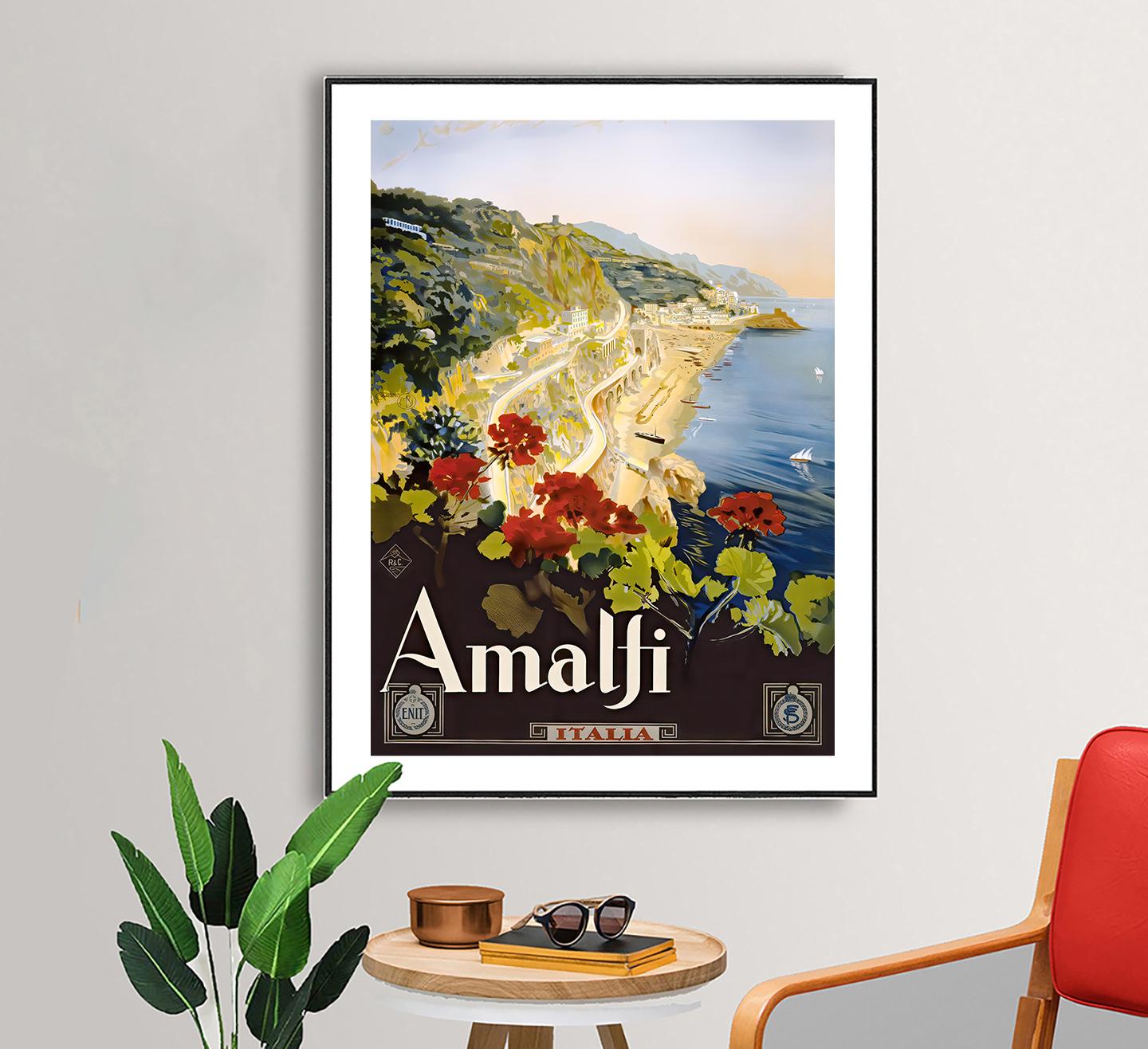 Amalfi Italia Vintage Travel Poster: Retro Wall Art
