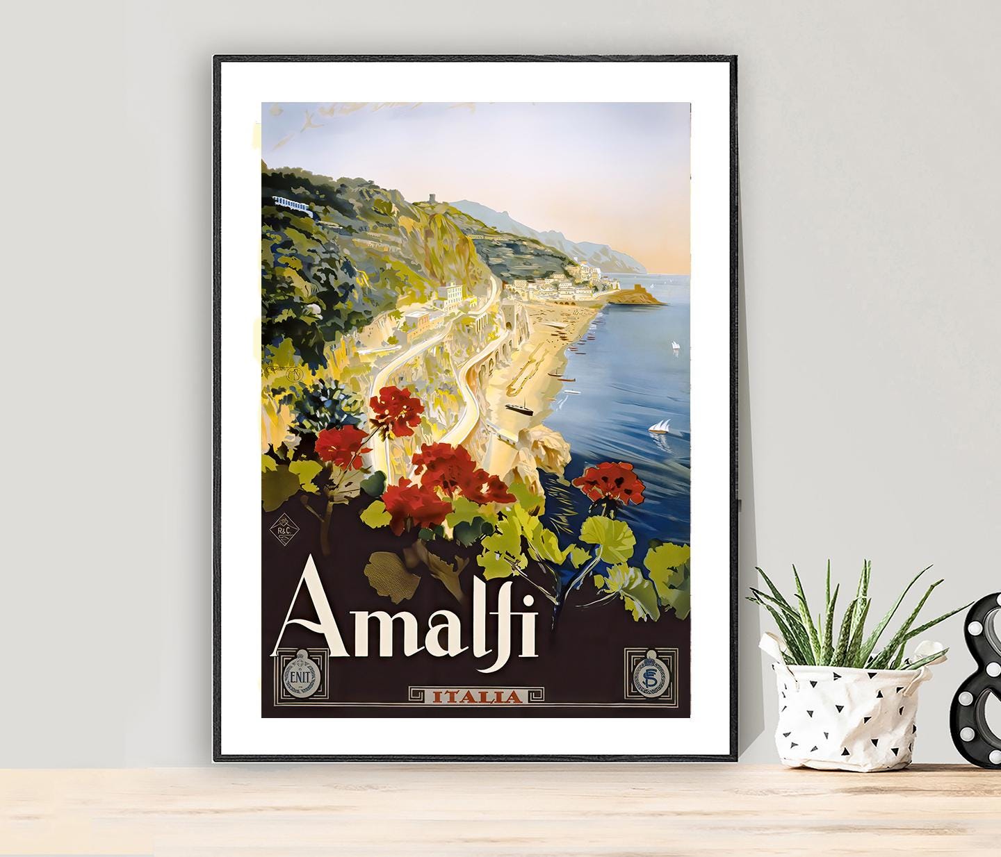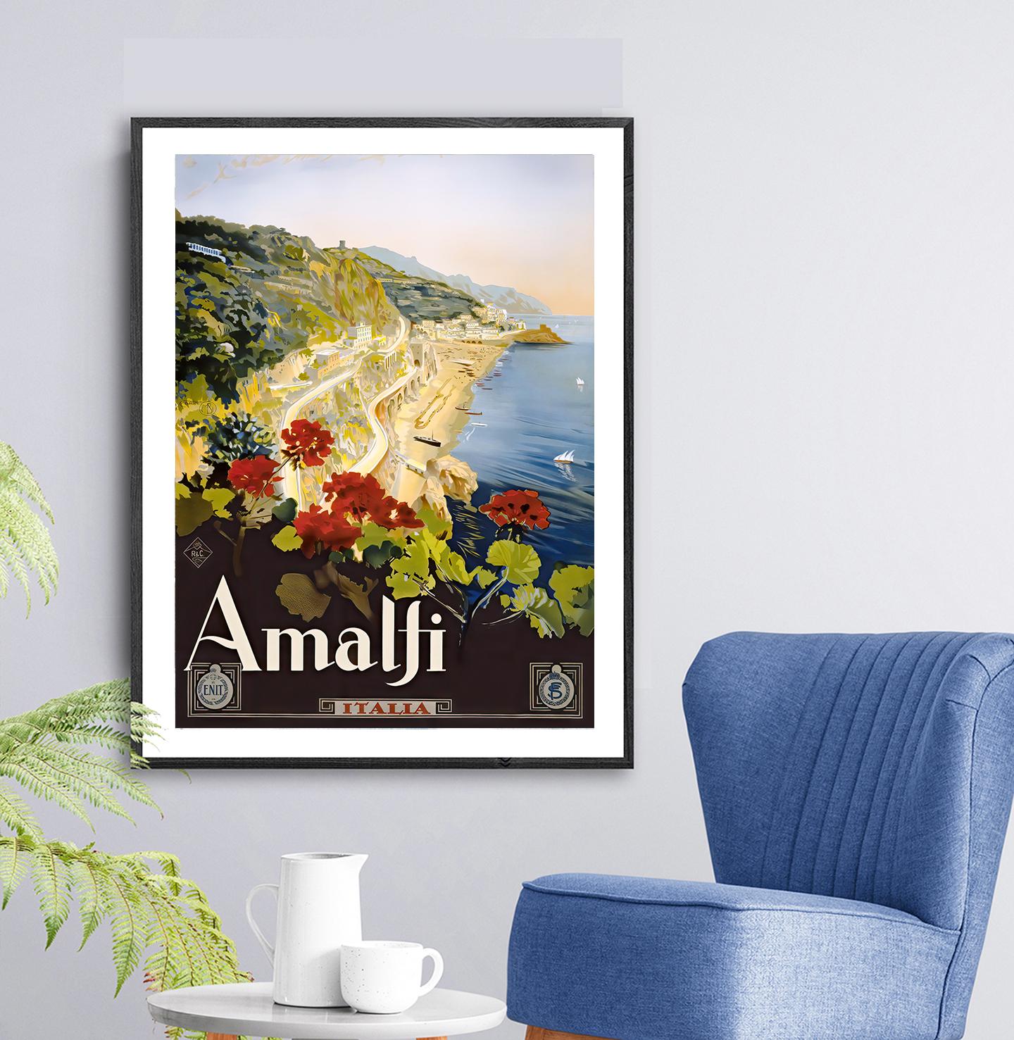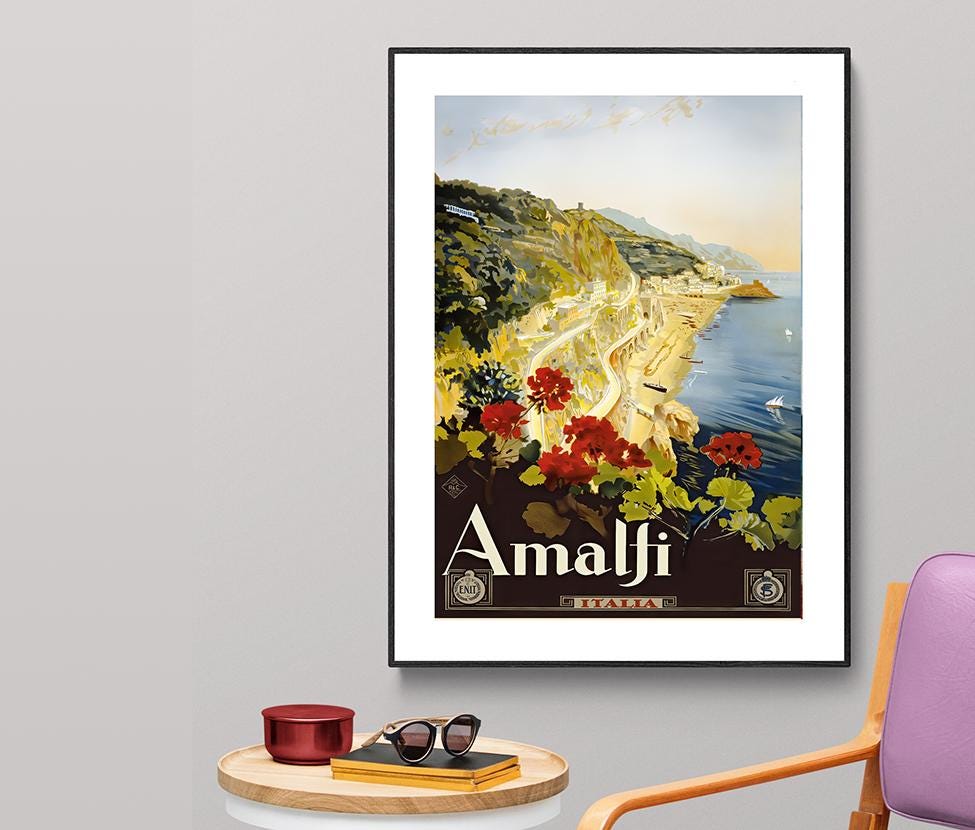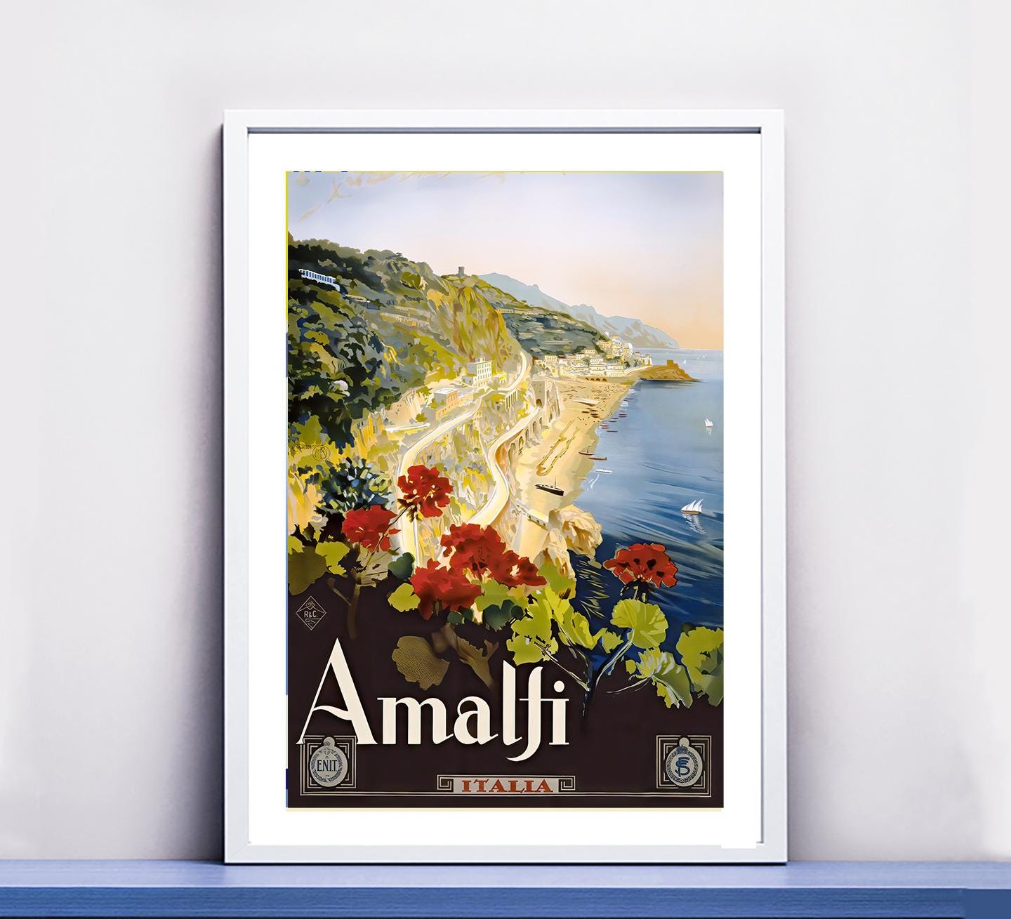 Amalfi Italia Vintage Travel Poster: Retro Wall Art