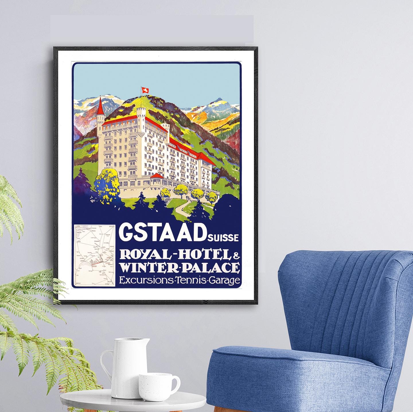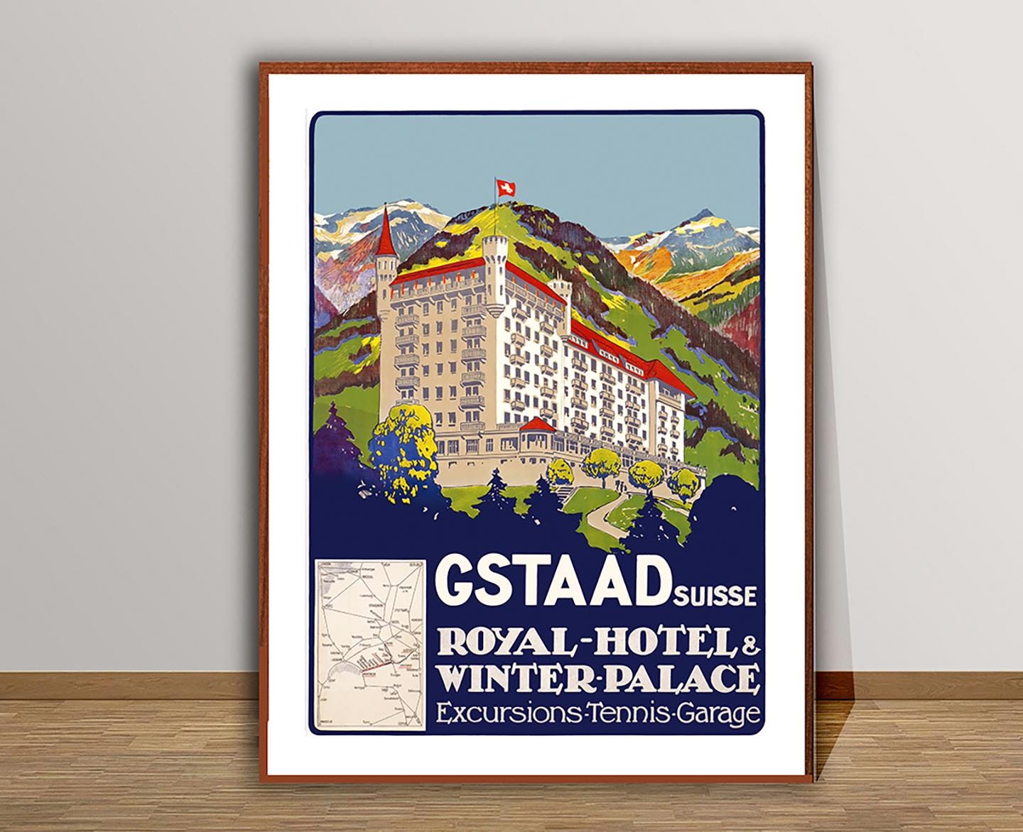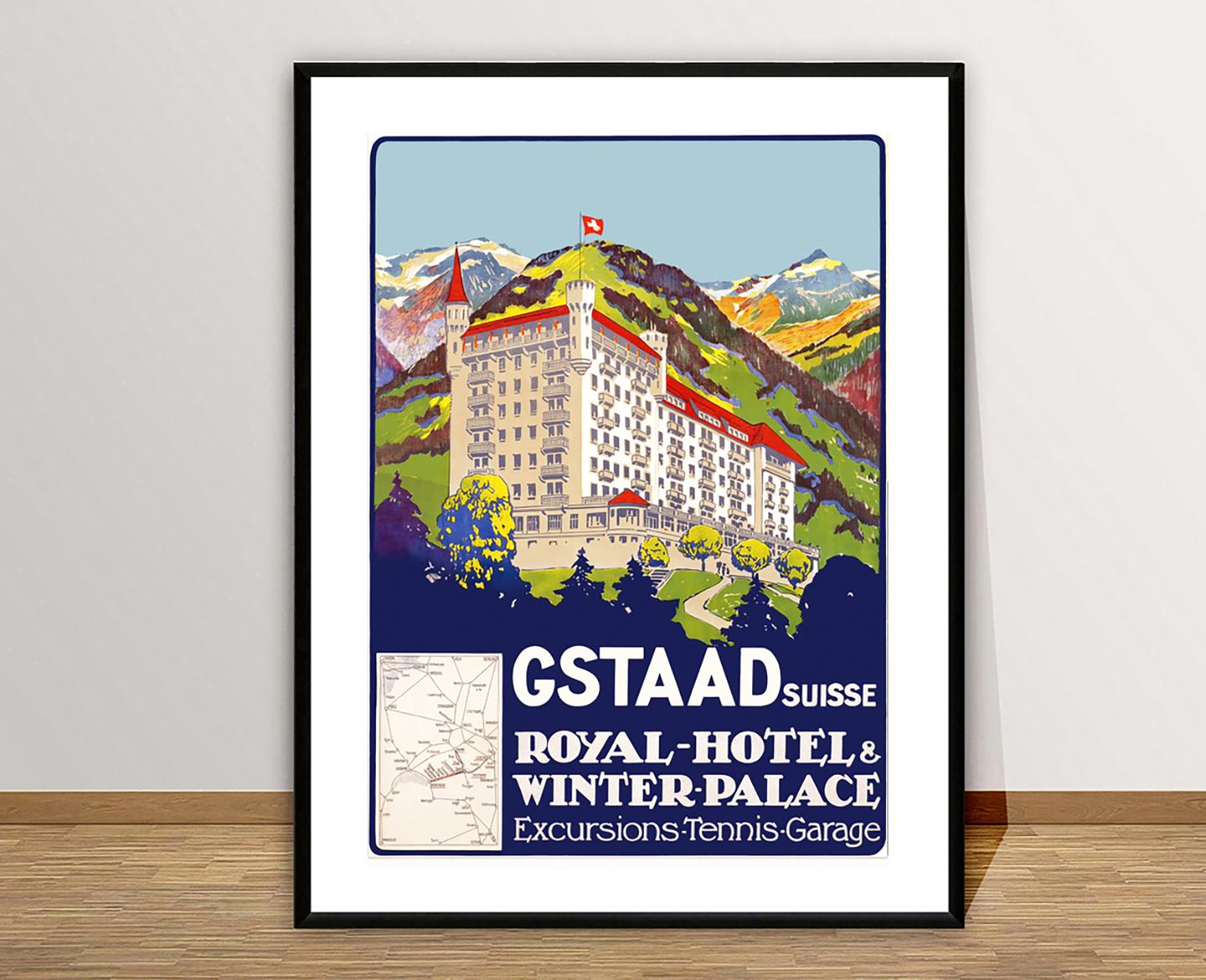 Gstaad Suisse Royal-Hotel, Winter Palace Vintage Travel Poster - Retro Gstaad Poster - Poster Paper or Canvas Print