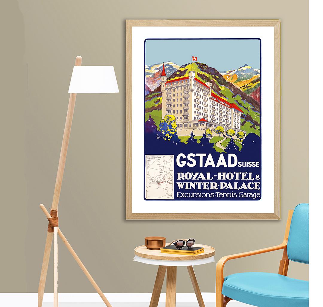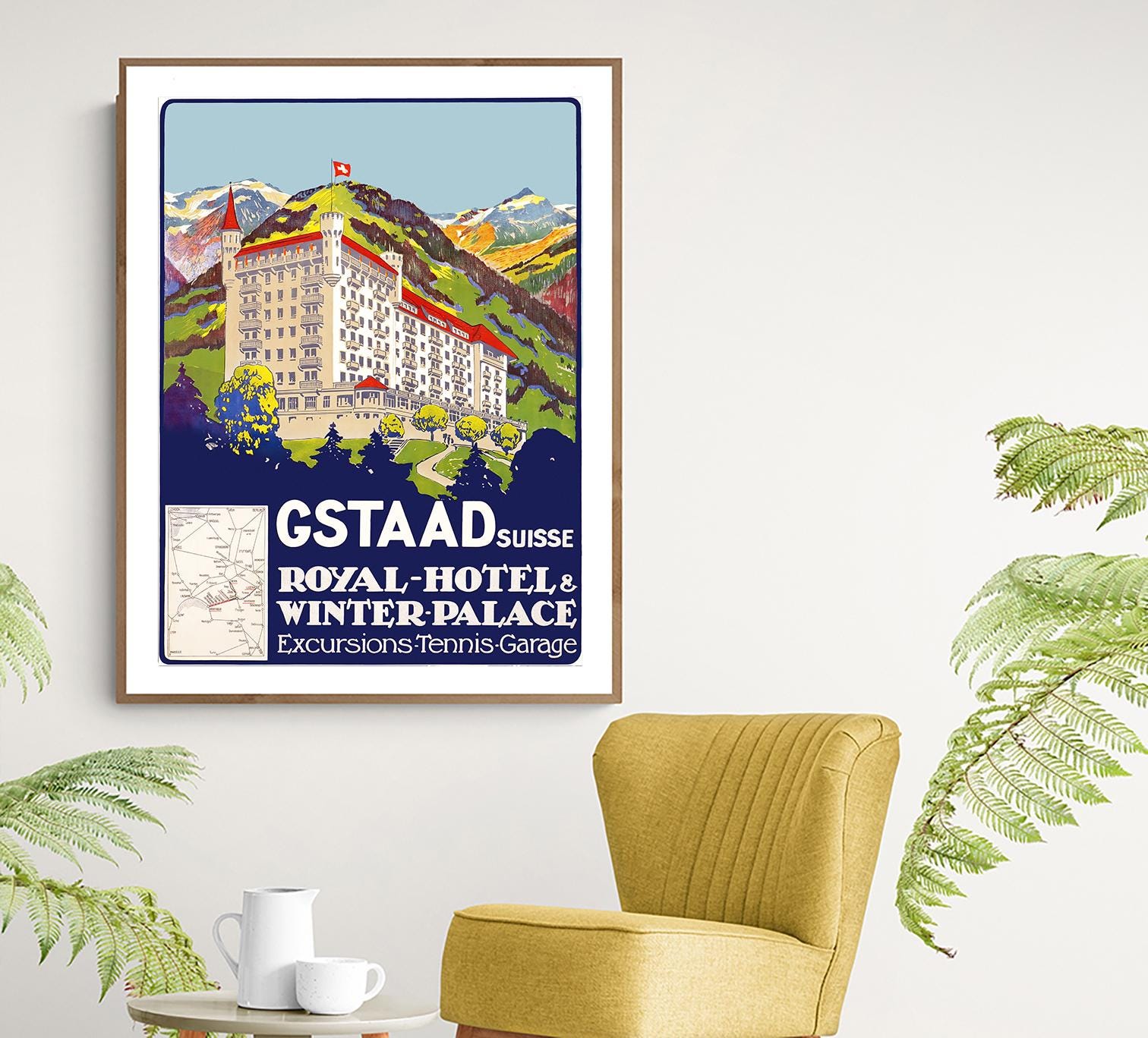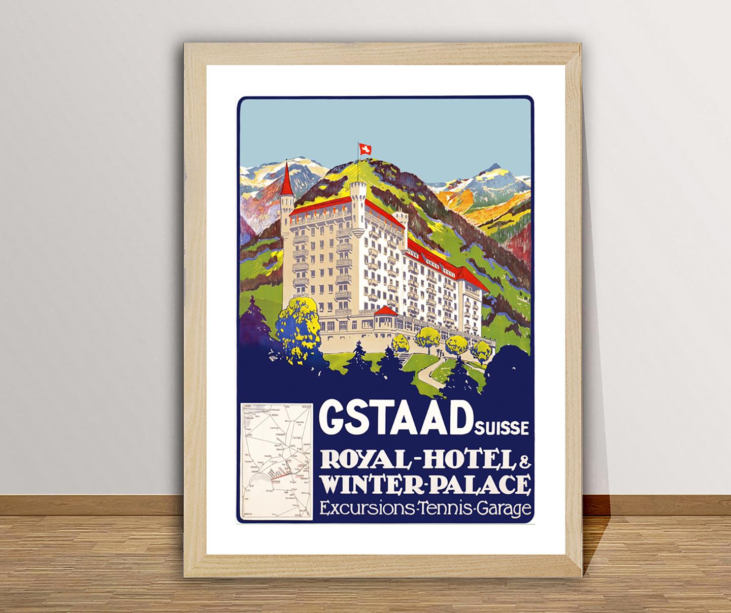 Gstaad Suisse Royal-Hotel, Winter Palace Vintage Travel Poster - Retro Gstaad Poster - Poster Paper or Canvas Print