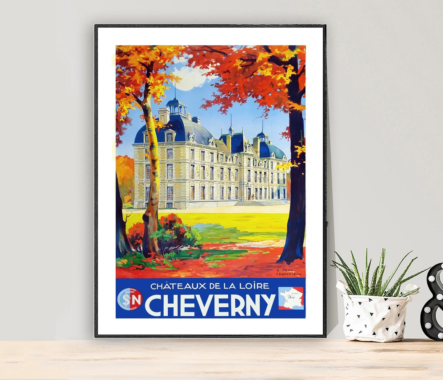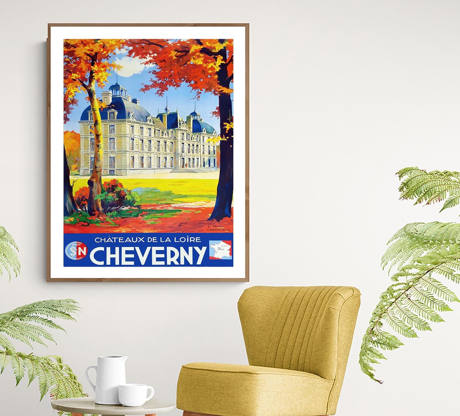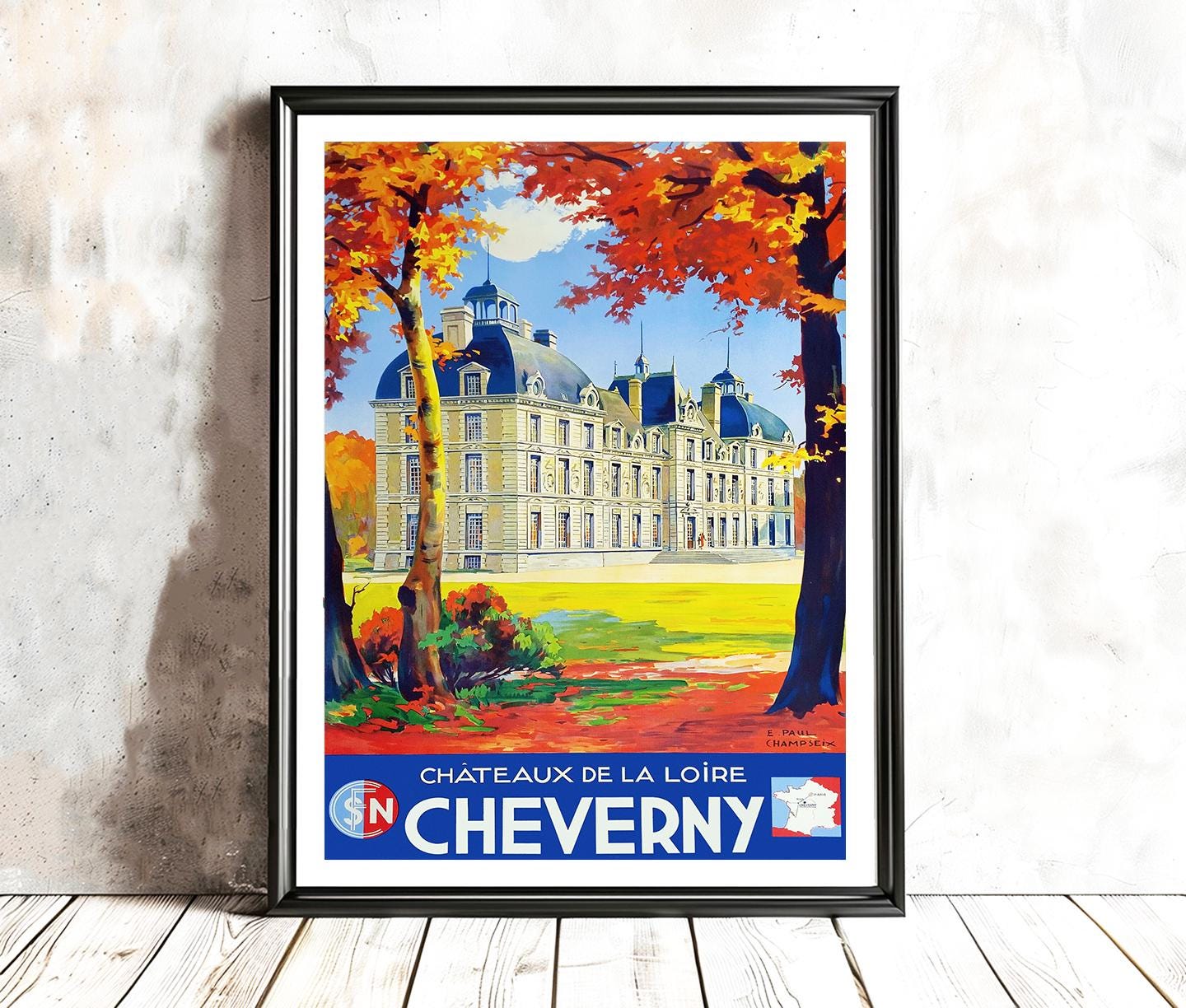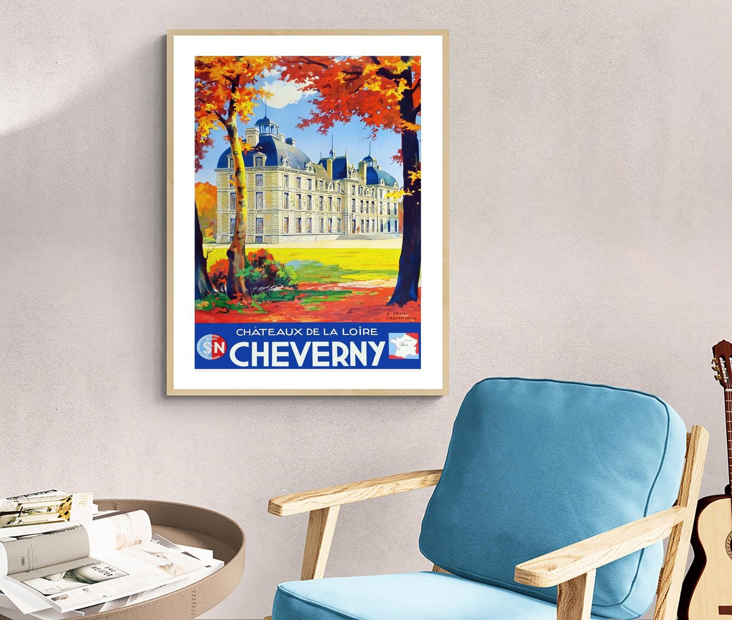 Chateaux de la Loire Cheverny, France Vintage Travel Poster - Retro Cheverny Poster - Poster Paper or Canvas Print