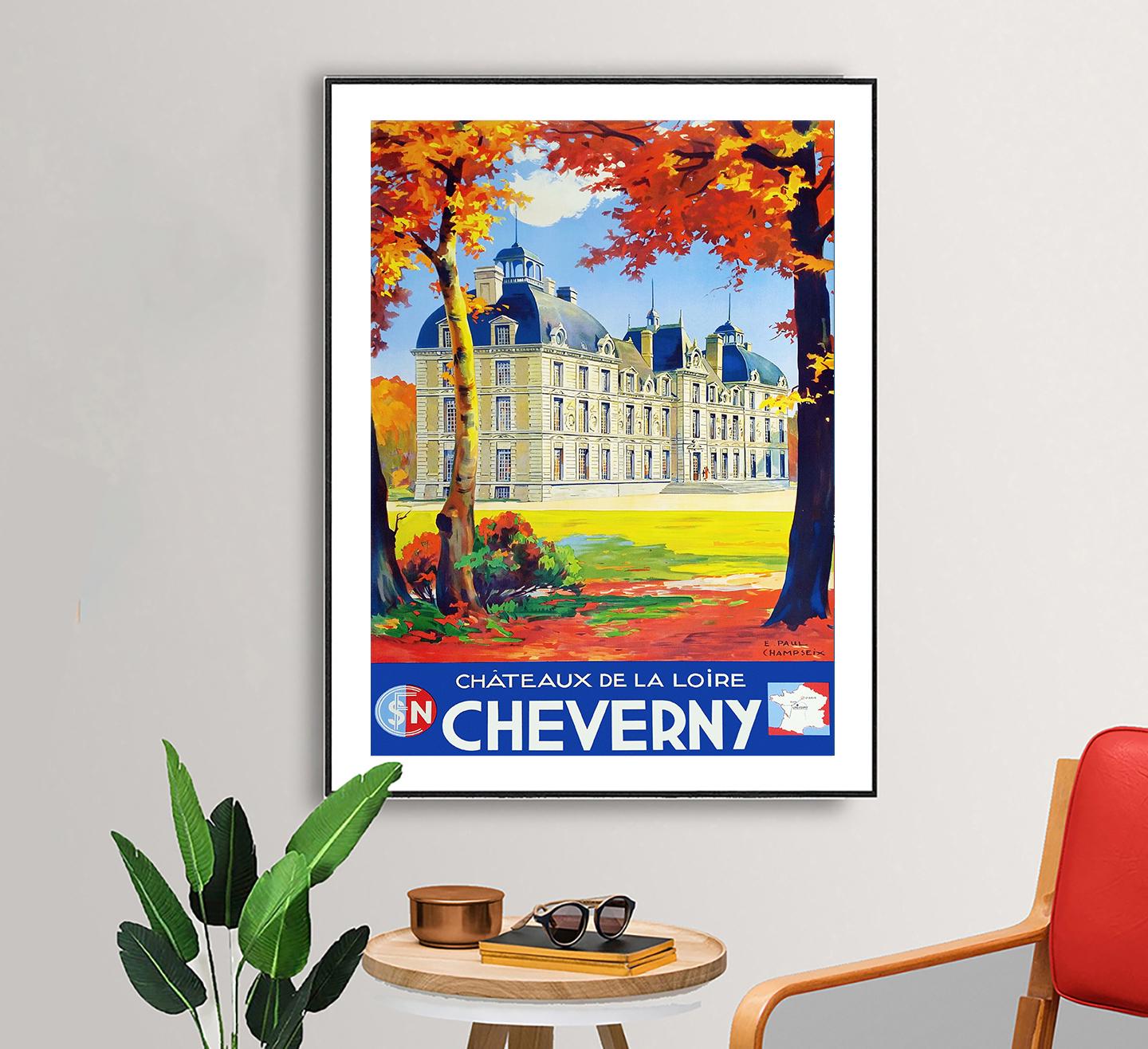 Cheverny France Vintage Travel Poster: Loire Chateau Art Print
