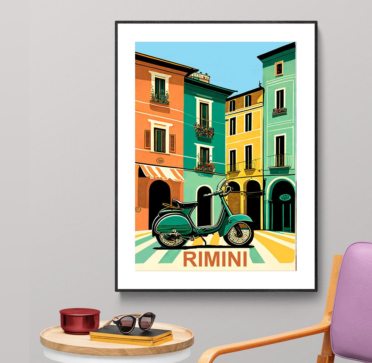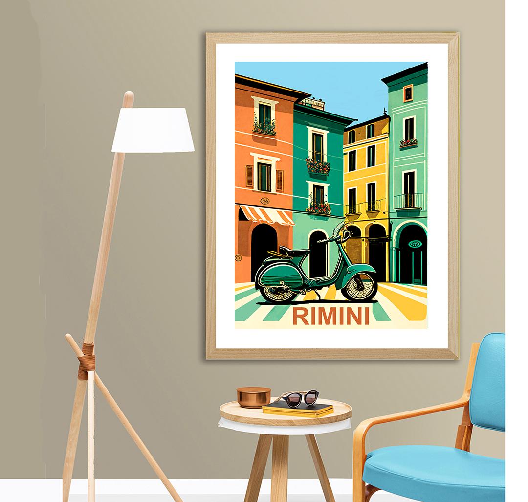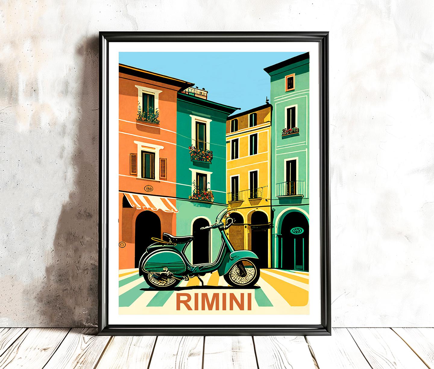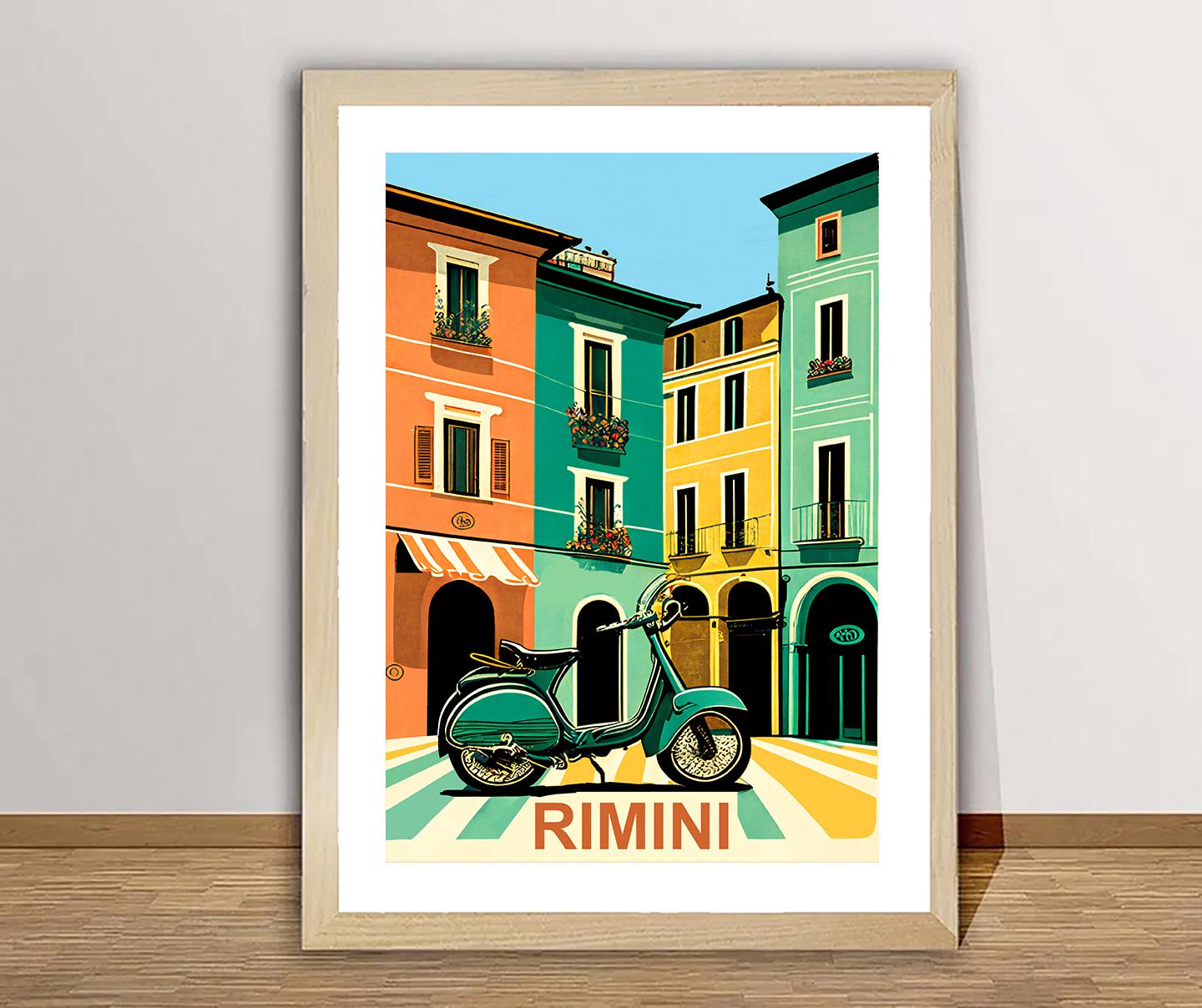 Rimini Italy Travel Poster: Vintage Scooter Art Print