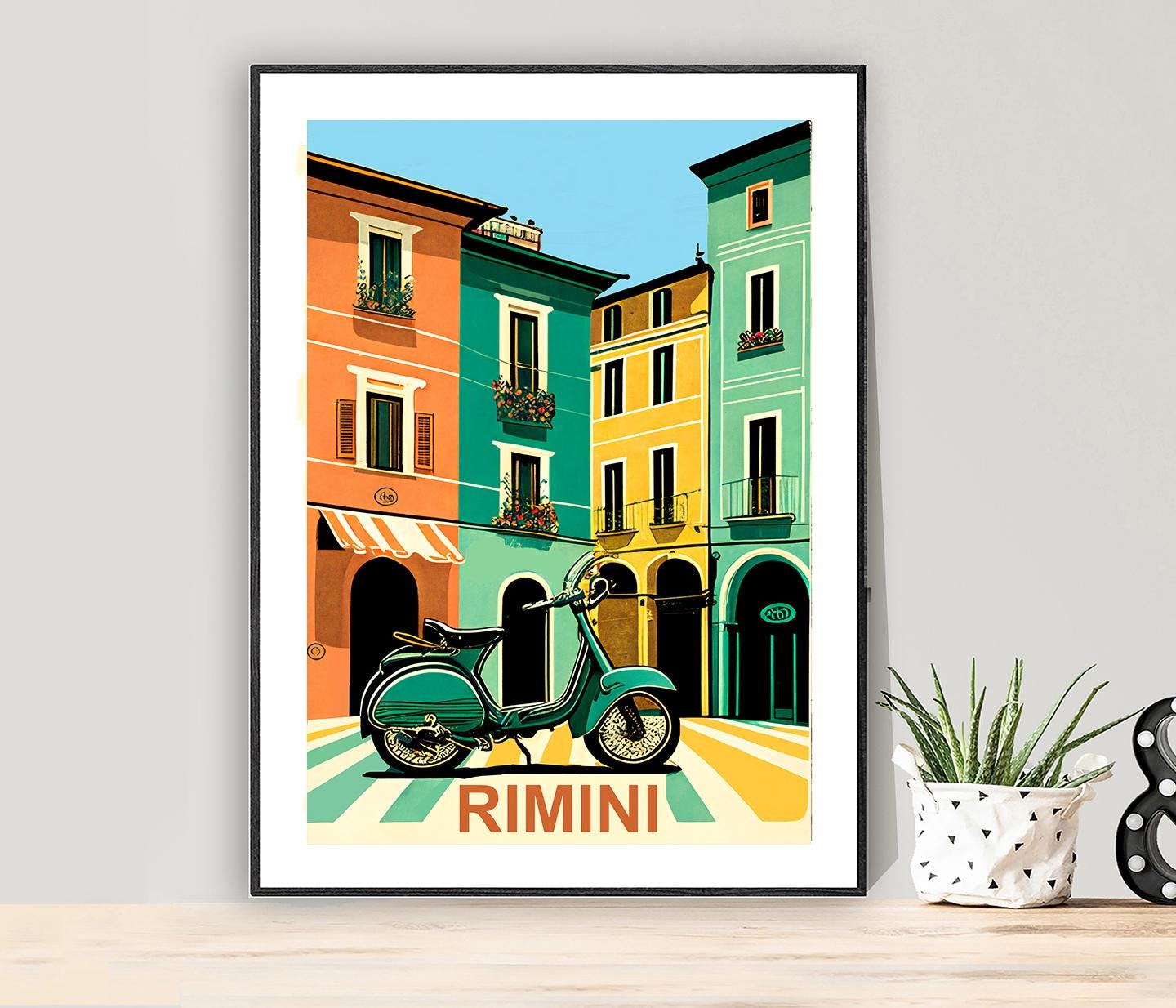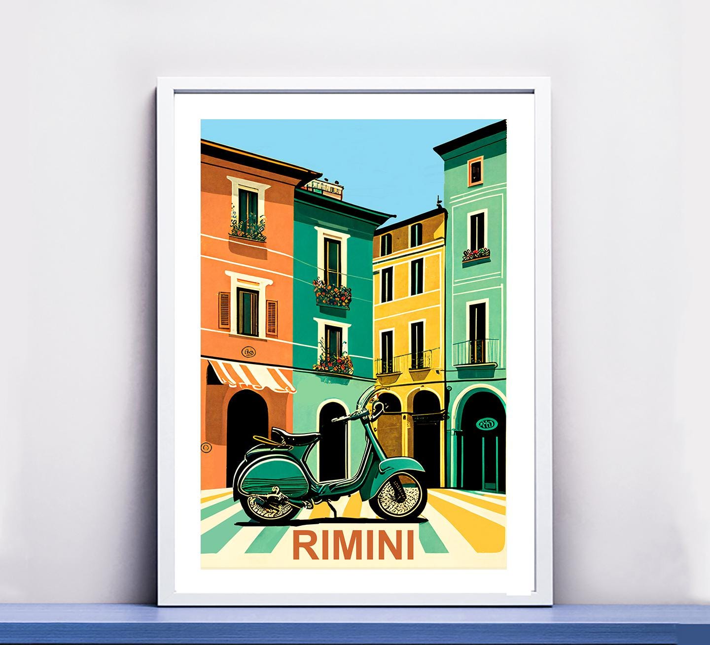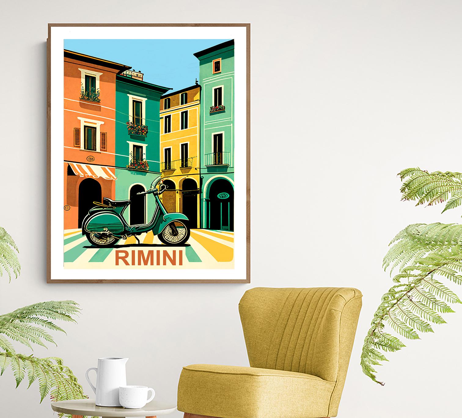 Rimini Italy Travel Poster: Vintage Scooter Art Print