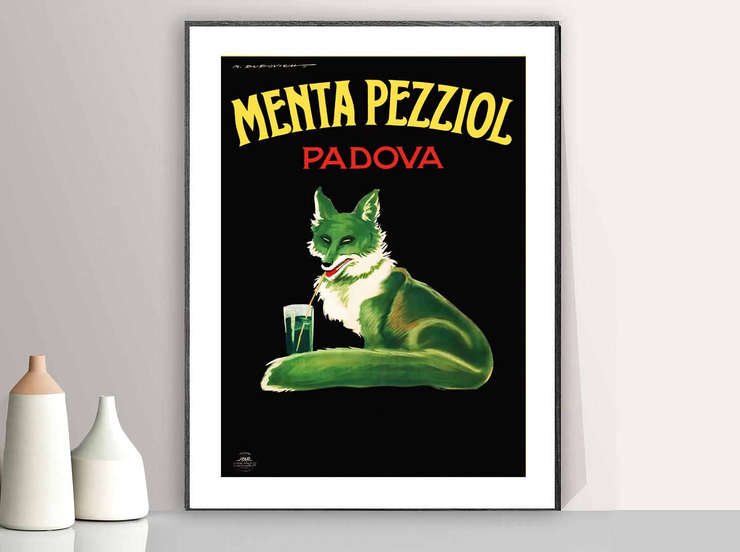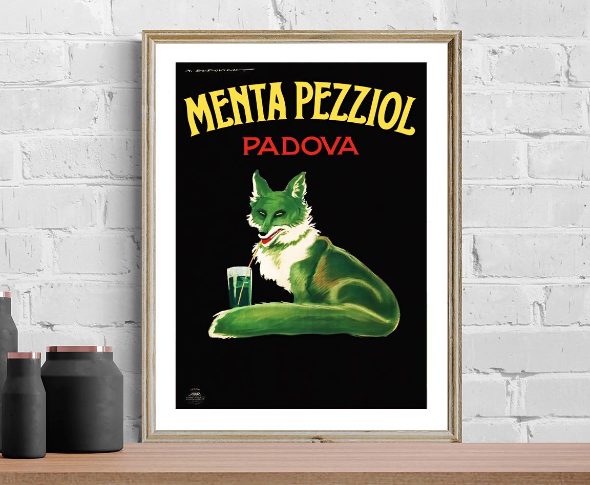 Vintage Menta Pezziol Padova Advertisement Art Print - Reproduction of a Vintage Drink Artwork, Decorative Purposes Wall Decor - Poster Paper, Canvas Print