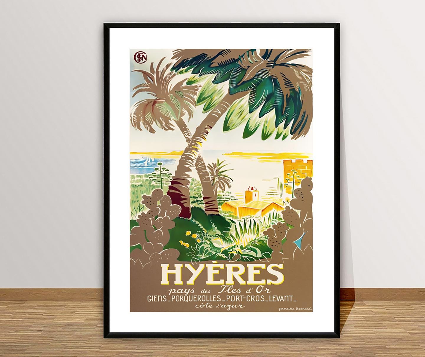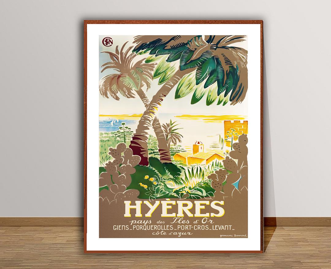 Hyeres, Cote d'Azur, France Vintage Travel Poster - Poster Paper or Canvas Print
