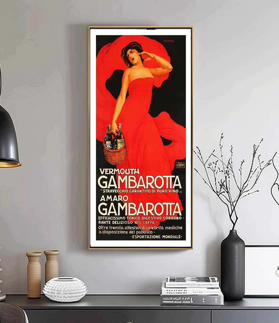 Vintage Vermouth Gambarotta Advertisement Art Print - Reproduction of a Vintage Artwork, Decorative Purposes Wall Decor - Poster Paper or Canvas Print