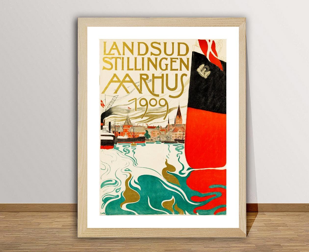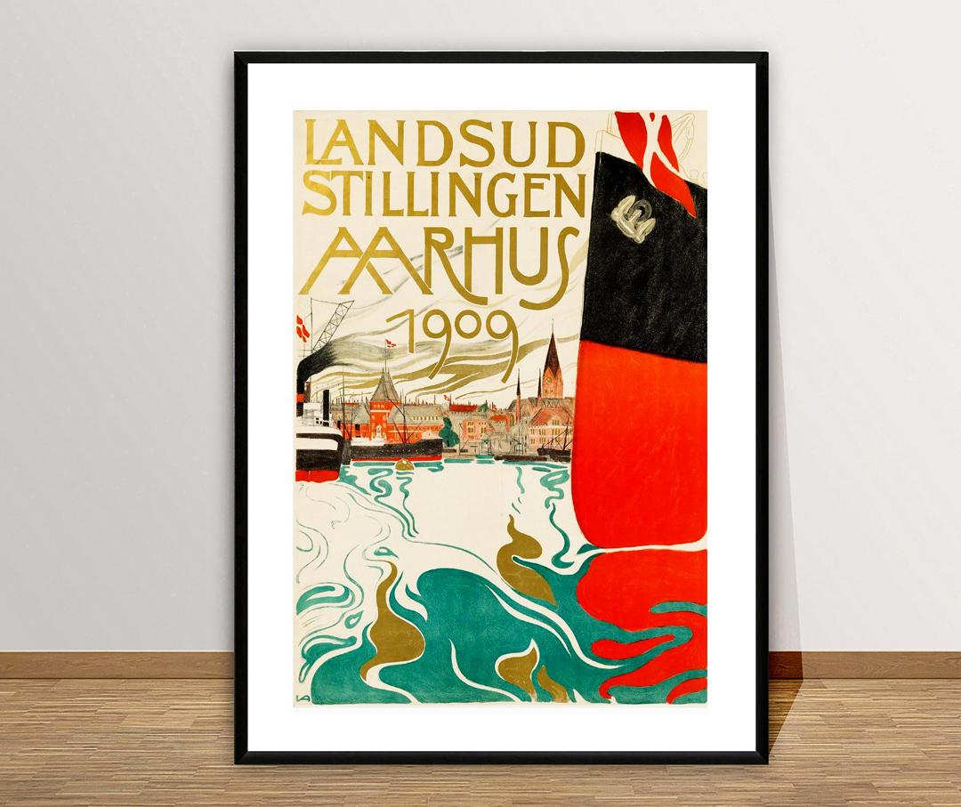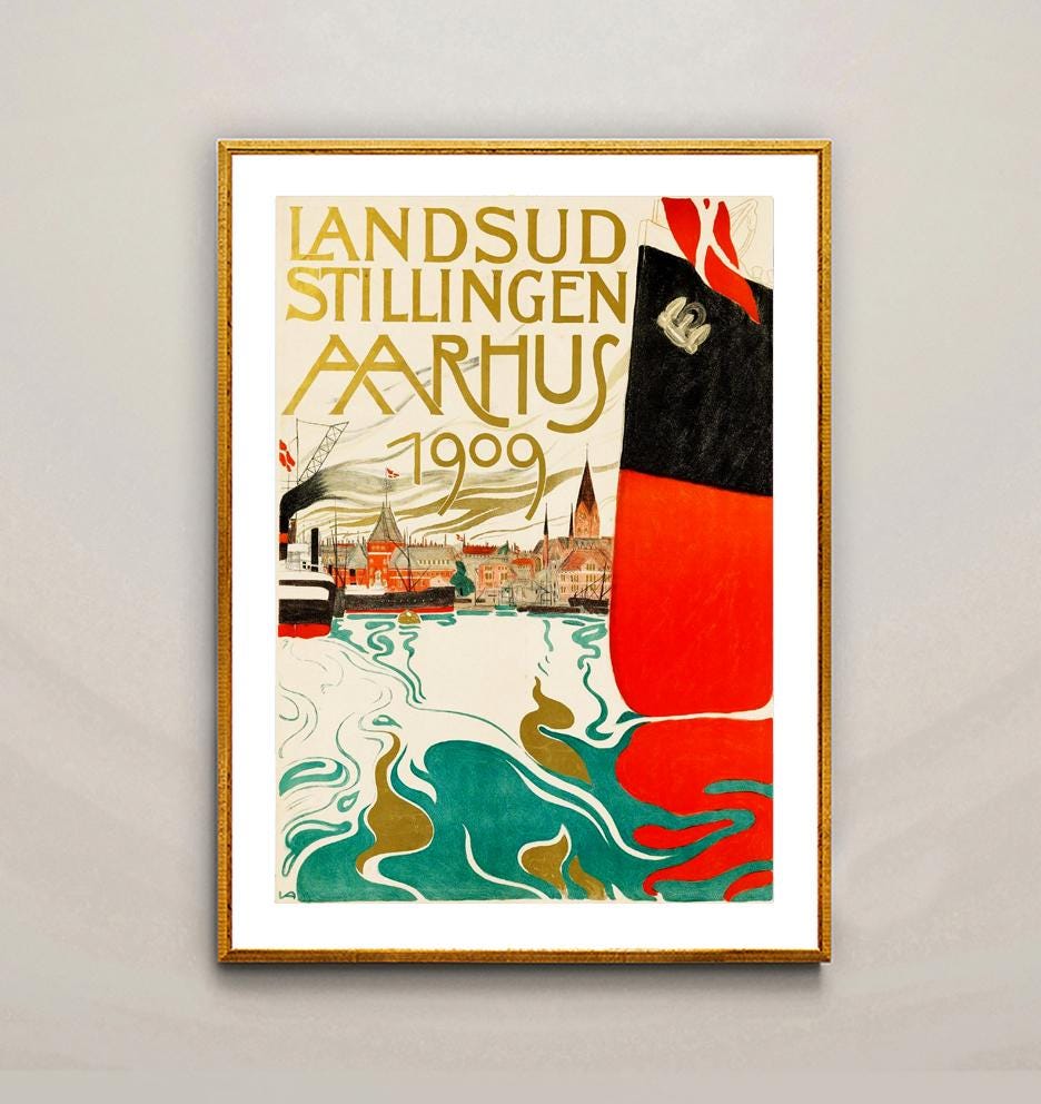 Aarhus Denmark Vintage Travel Poster: Landsud Stillingen 1909