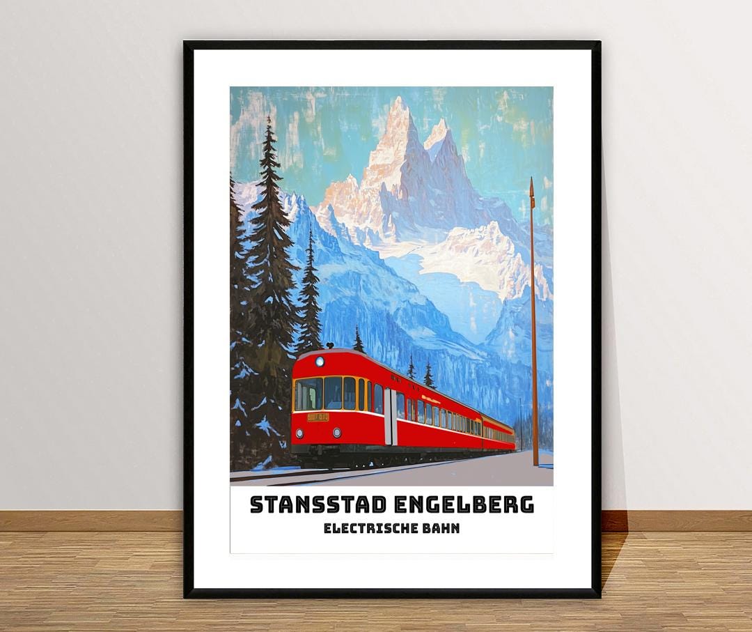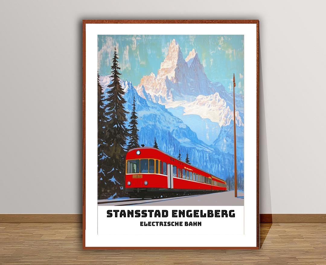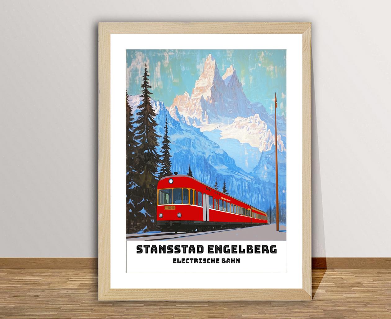 Electrische Bahn Stansstad Engelberg, Schweiz Vintage Travel Poster - Poster Paper or Canvas Print / Gift Idea / Wall Decor
