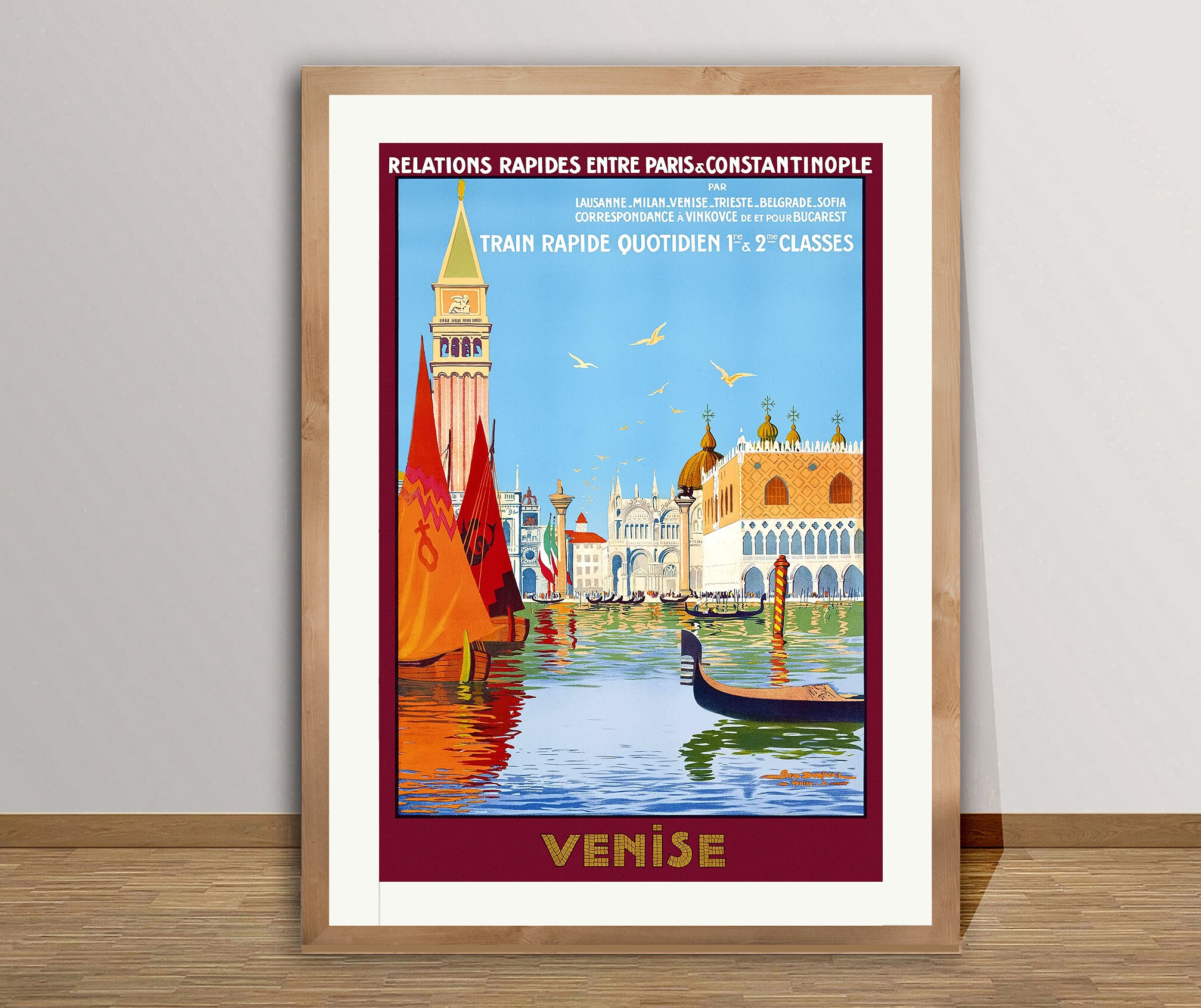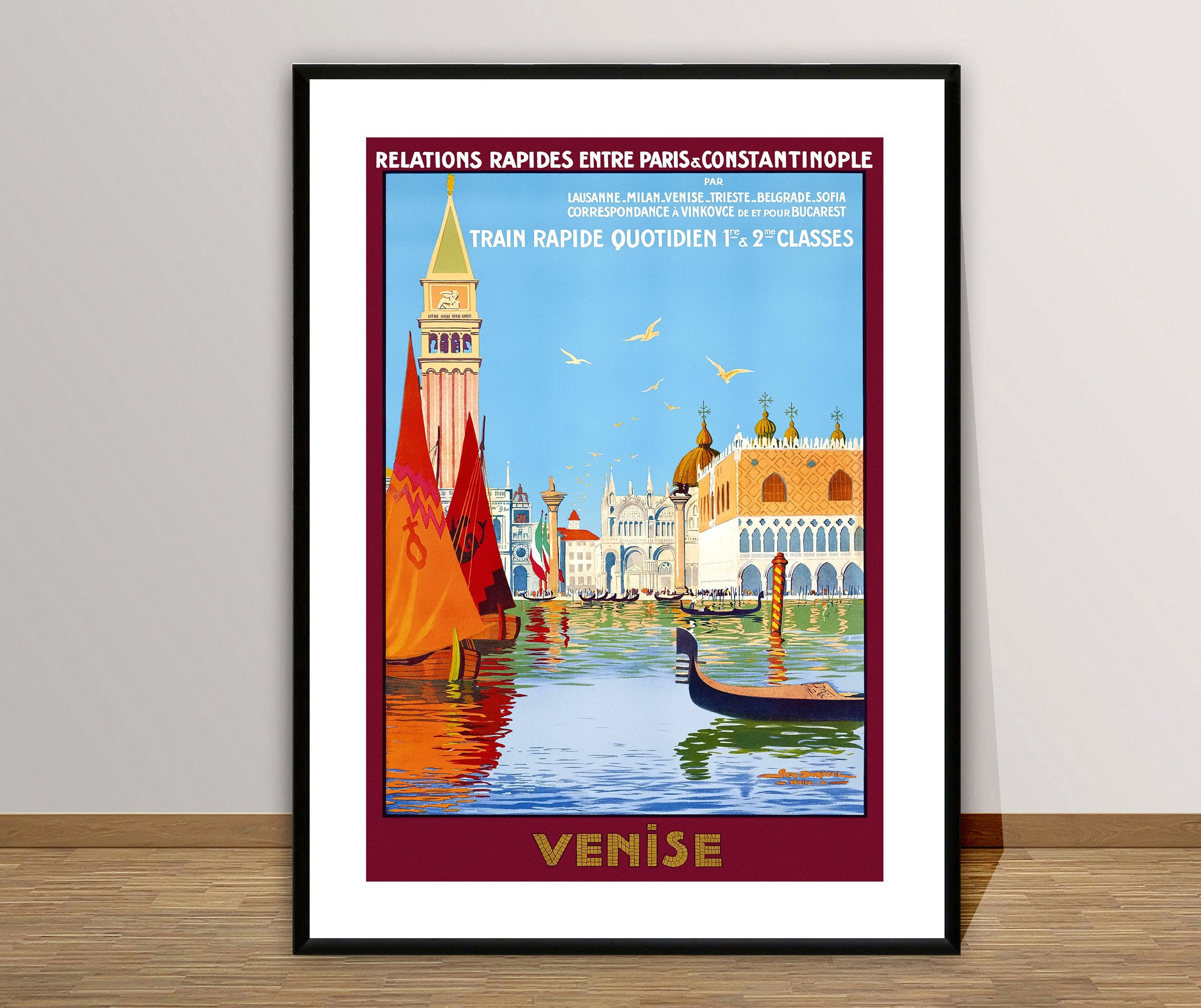 Venise Chemin de Fer de L'est, Italy Vintage Travel Poster - Poster Paper or Canvas Print / Gift Idea / Wall Decor