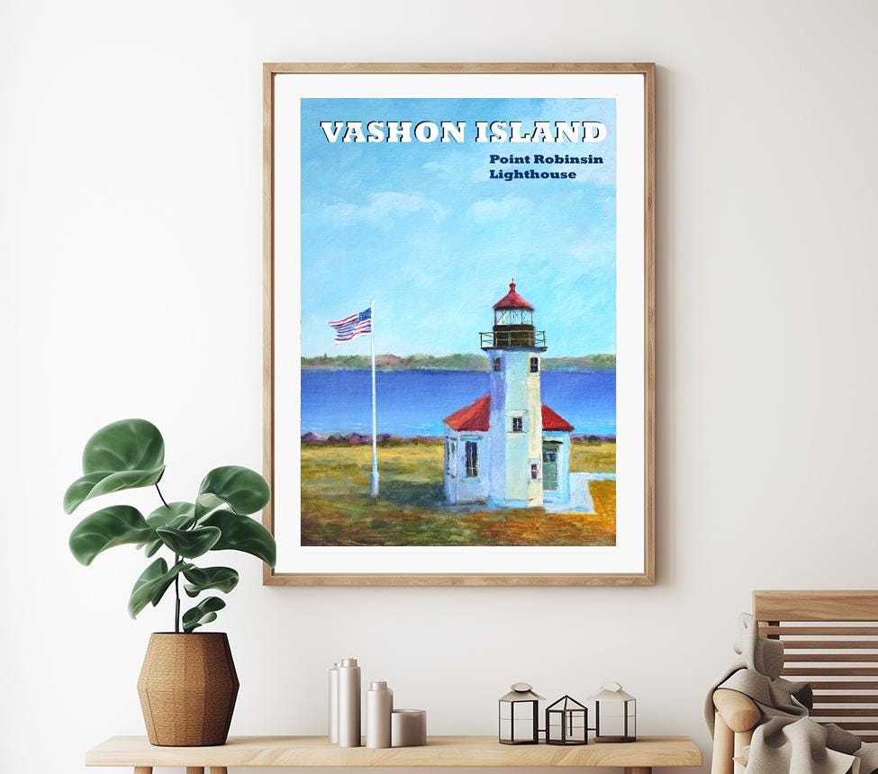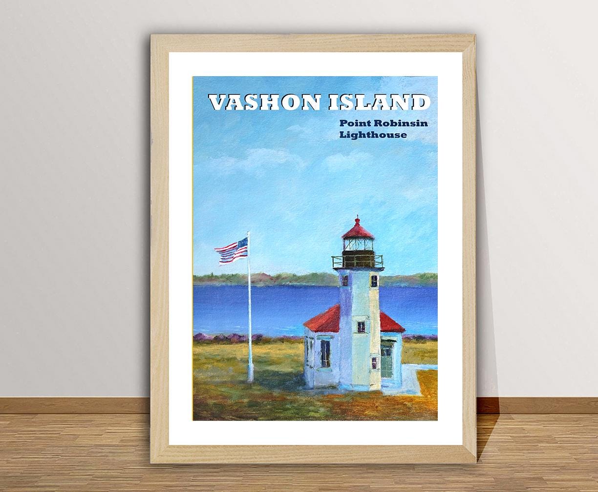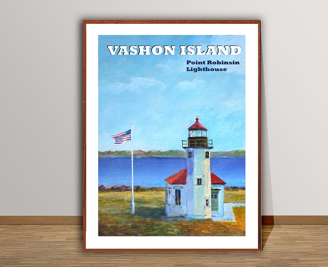 Vashon Island Point Robinson Lighthouse Vintage Travel Poster