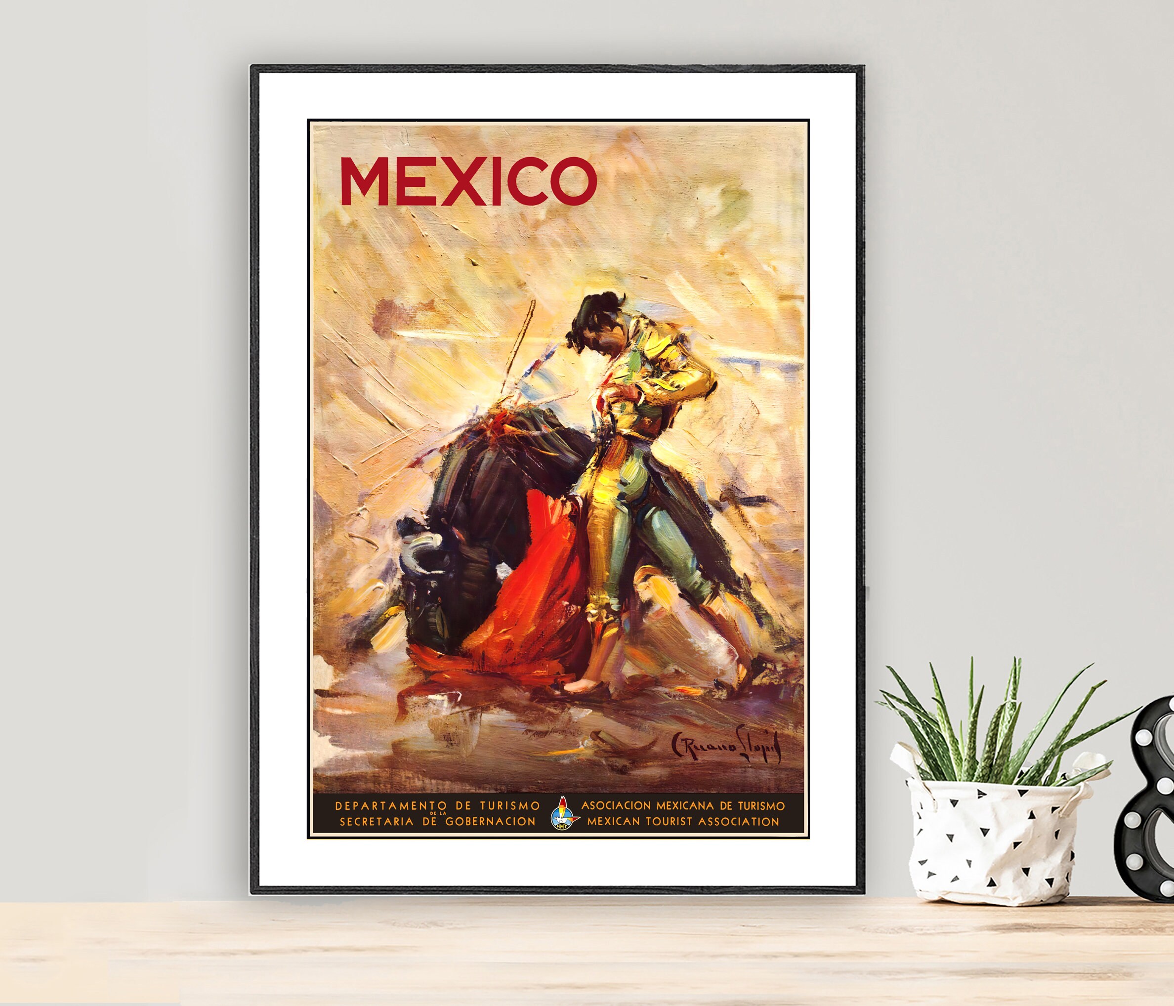 Mexico Vintage Travel Poster: Bullfighting Art Print