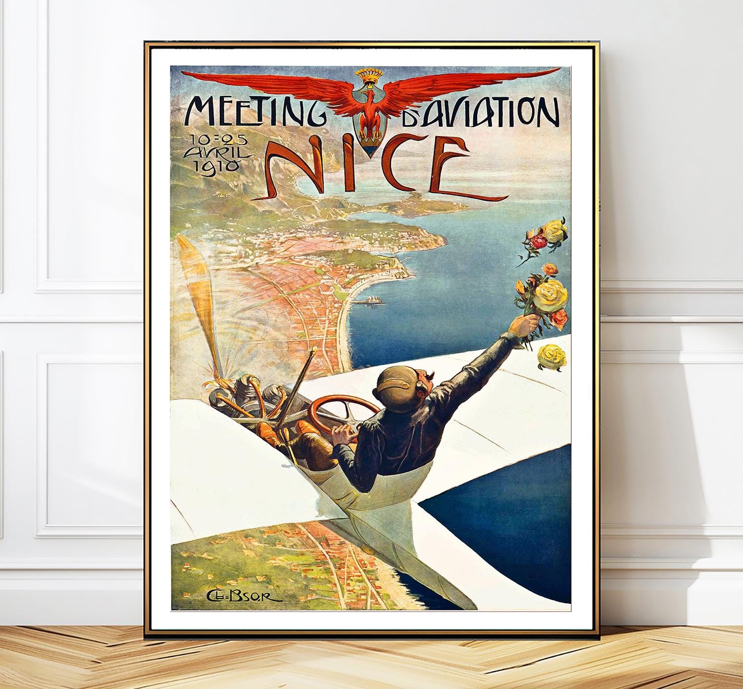Vintage Nice France Aviation Poster: Travel Wall Art