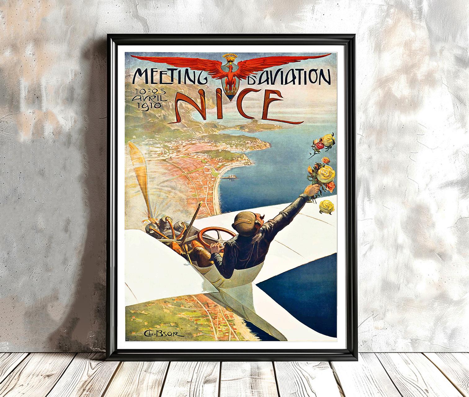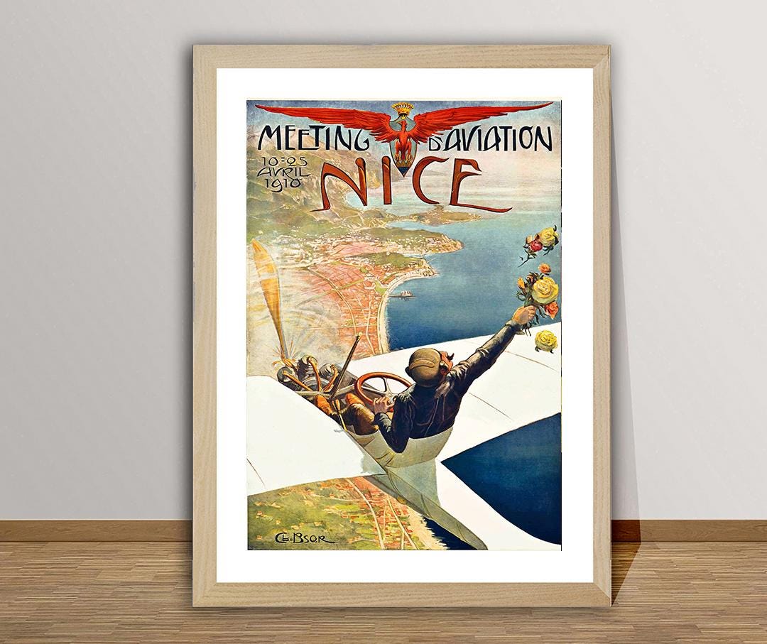 Nice, Meeting Aviation France Vintage Travel Poster - Poster Paper or Canvas Print