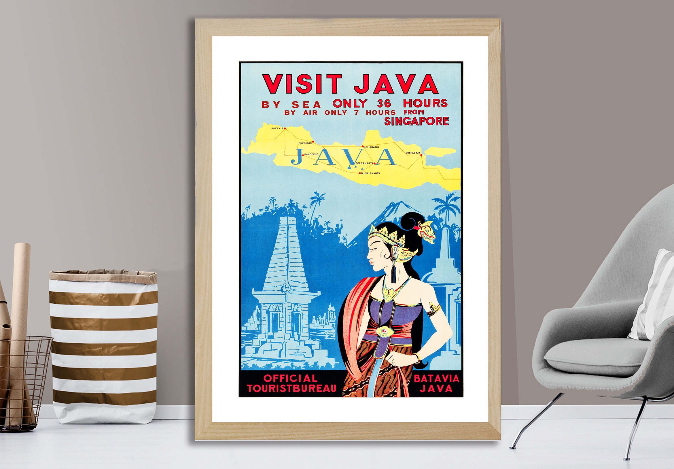 Vintage Java Indonesia Travel Poster: Java Island Art Print