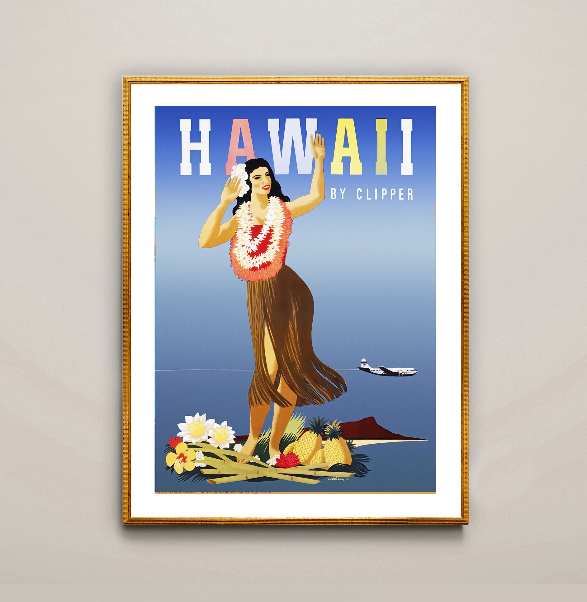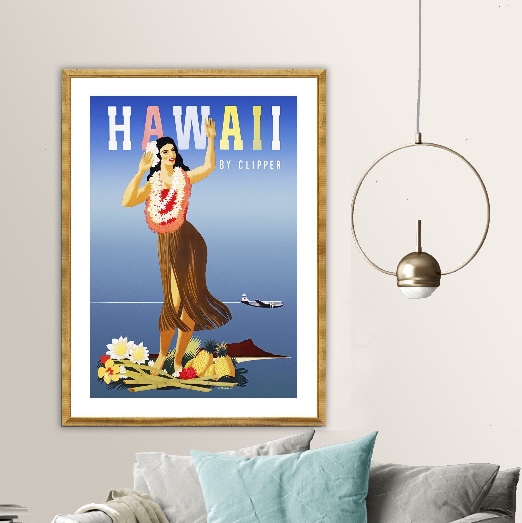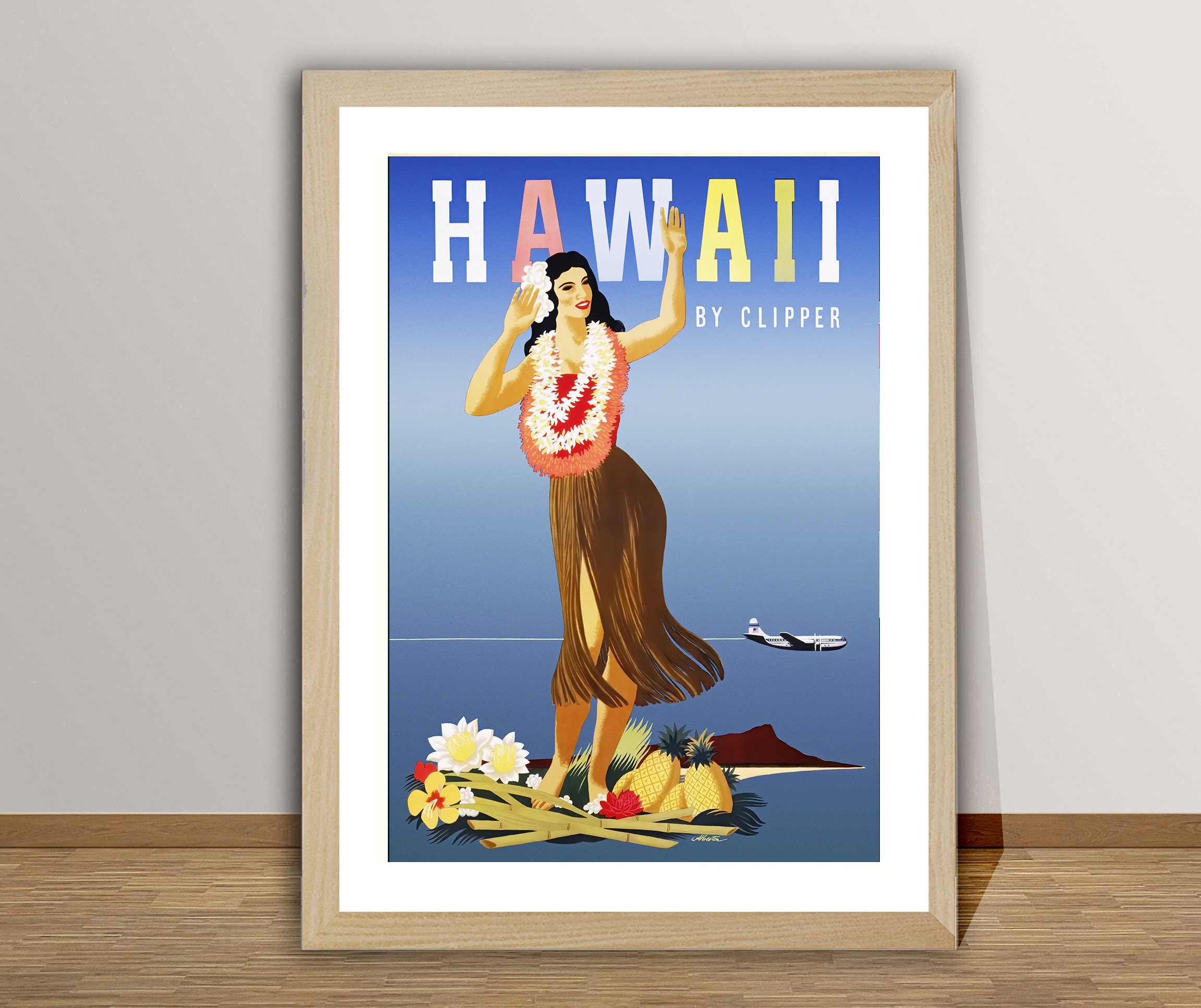 Hawaii Vintage Travel Poster: Hula Girl, Island Art Print